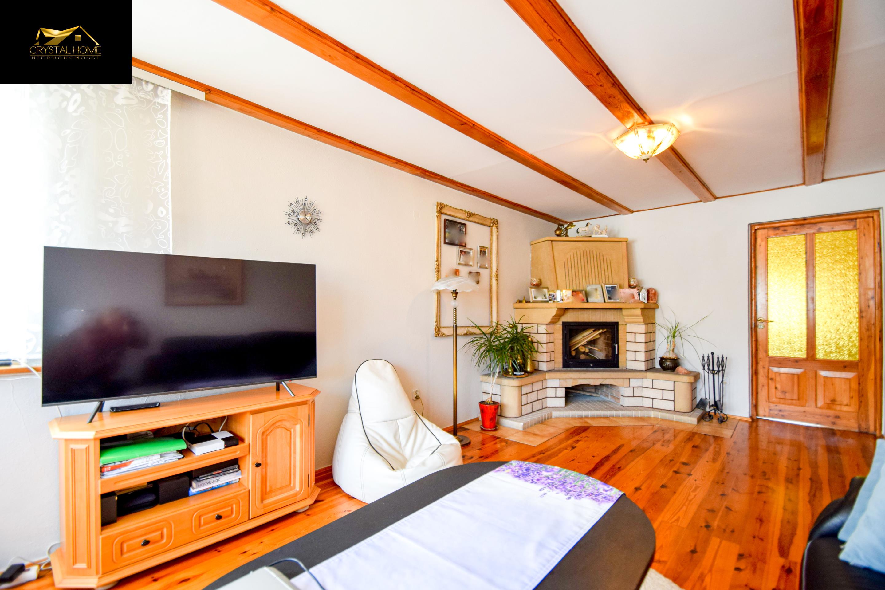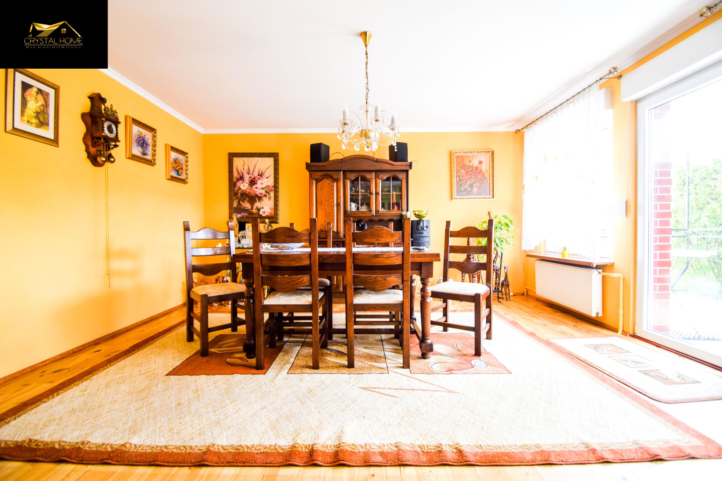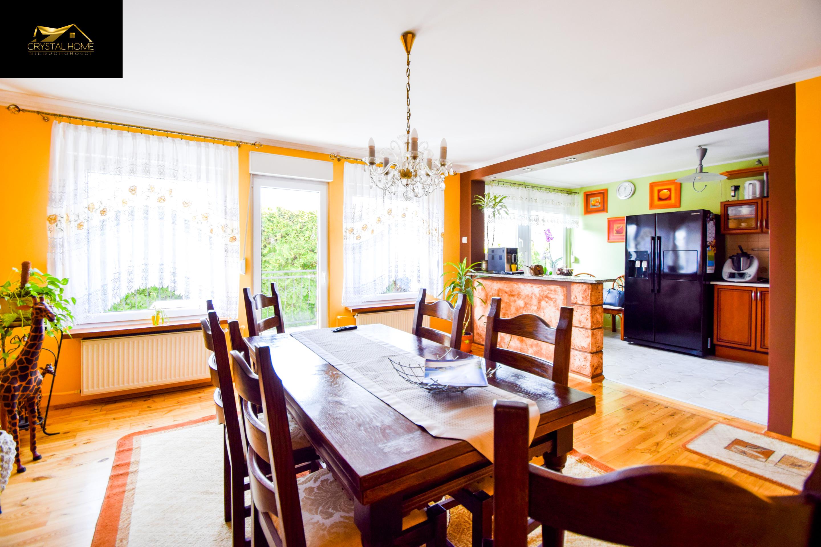 Dom został wybudowany w nowoczesnym stylu, a jego elewacja i dach zostały odnowione około trzy lata temu. W jednym z pokoi na piętrze znajduje się klimatyczny kominek, który dodaje uroku i tworzy przytulną atmosferę. Ogrzewanie w domu jest gazowe, co zapewnia komfort i oszczędność.