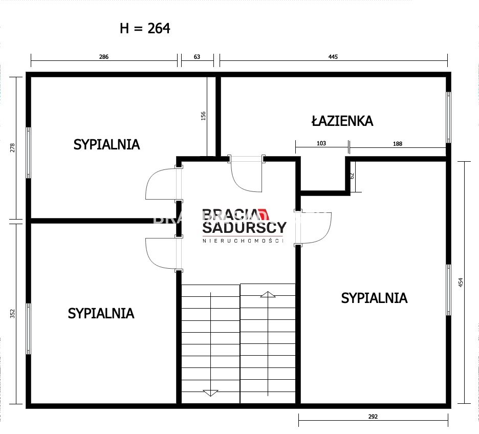 - Trzy oddzielne pokoje o powierzchniach: 13,5 /10 / 7 m2.