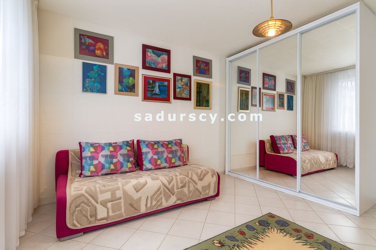 W cenie sprzedaży pozostają meble, w tym duża szafa garderobiana z przesuwanymi, lustrzanymi drzwiami, komplet szafek / meblościanka, kanapa, taboret, fotel.