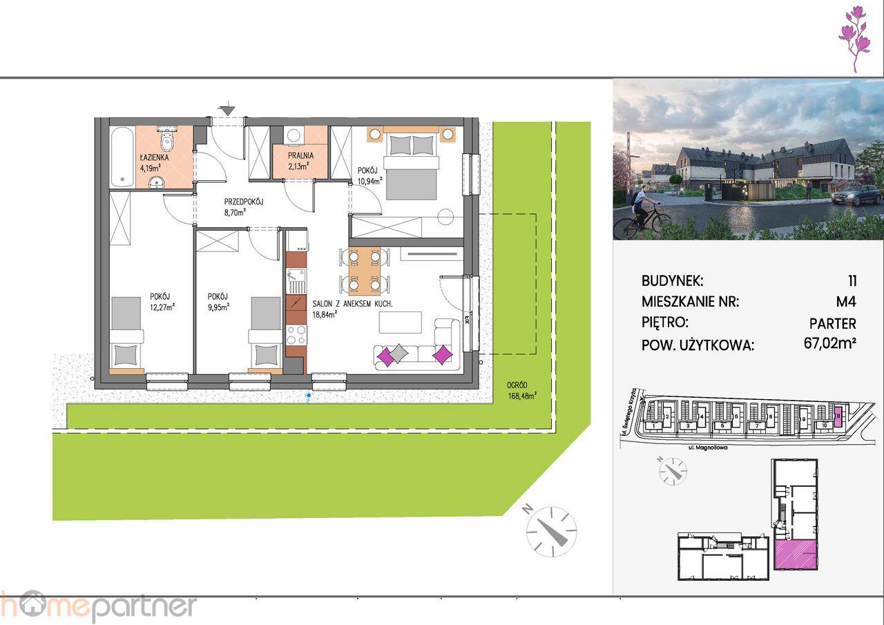 <b>Powierzchnia mieszkania:</b> 67,02 m + 168,48 m ogrodu