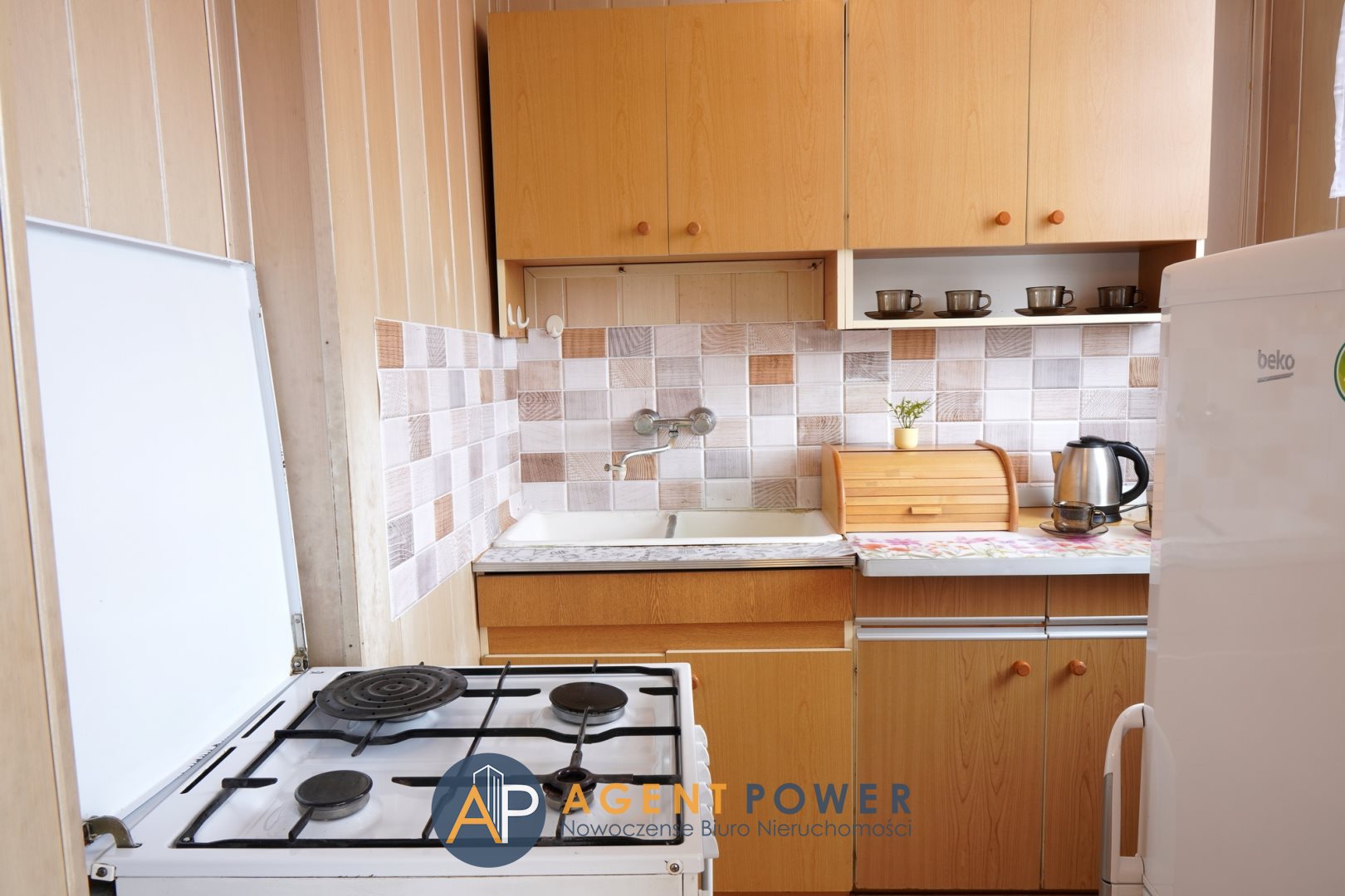 Kuchnia jasna z oknem (meble i AGD - starsze, do wykorzystania lub wymiany);
