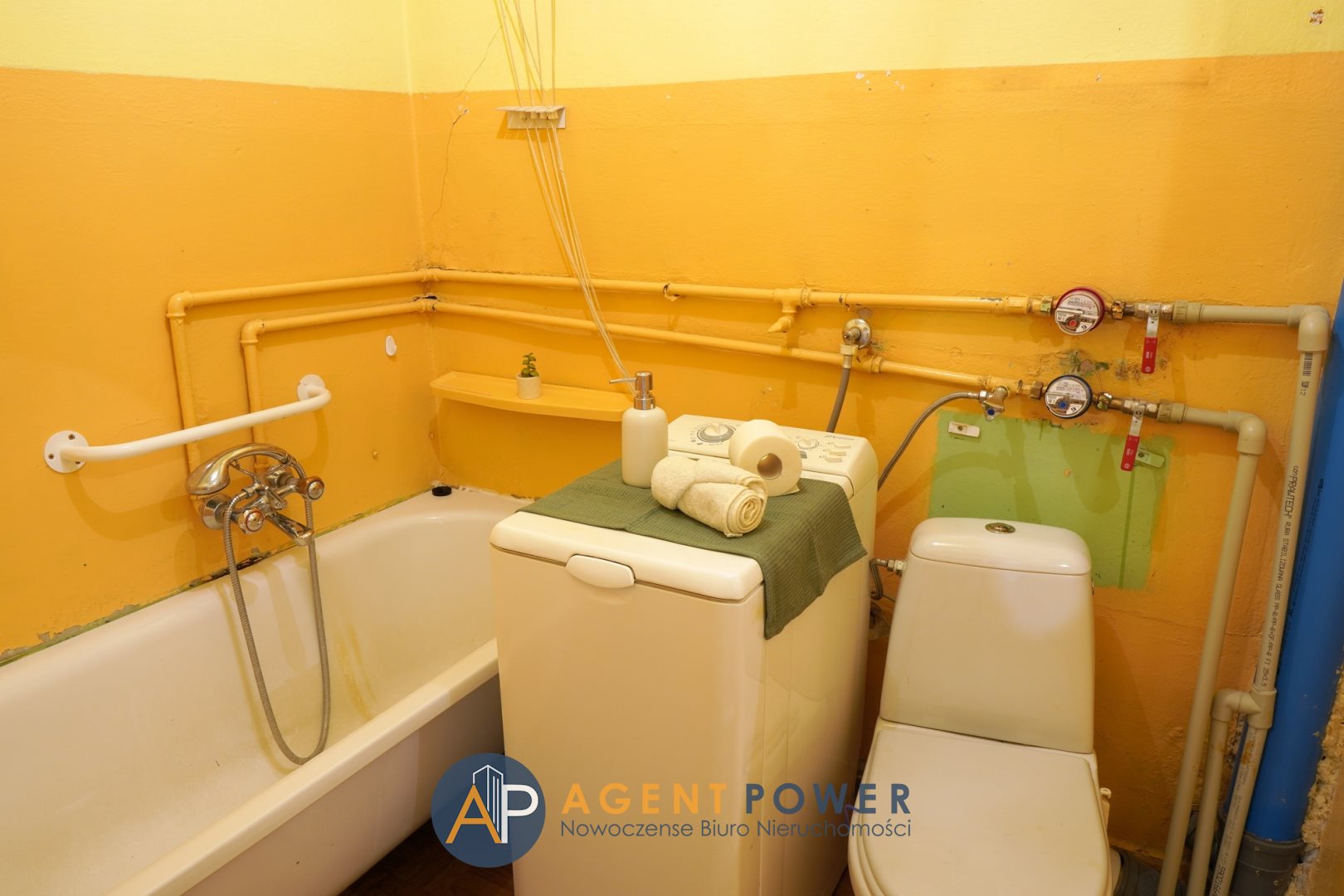 Łazienka z wanną, WC i pralką;