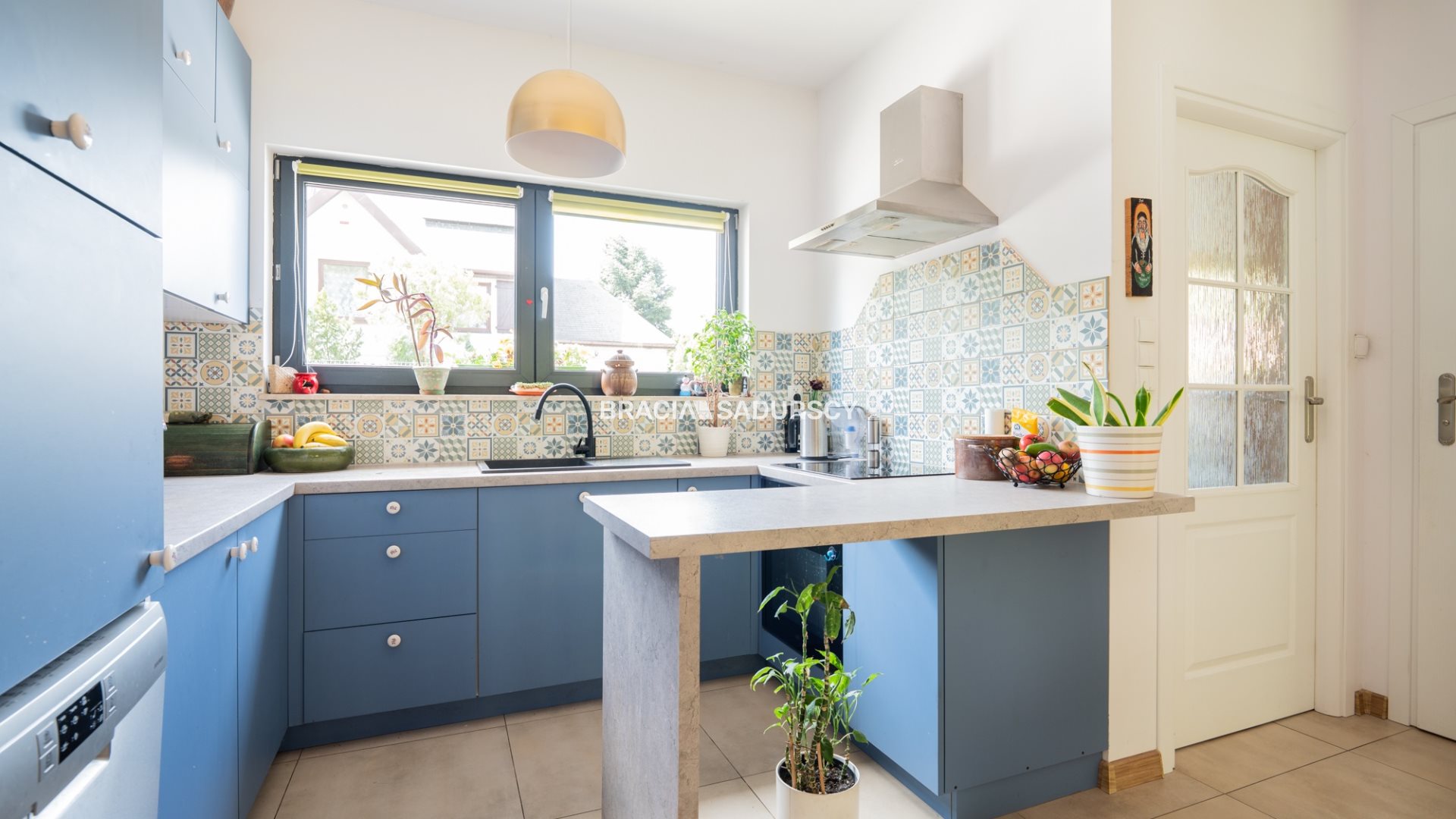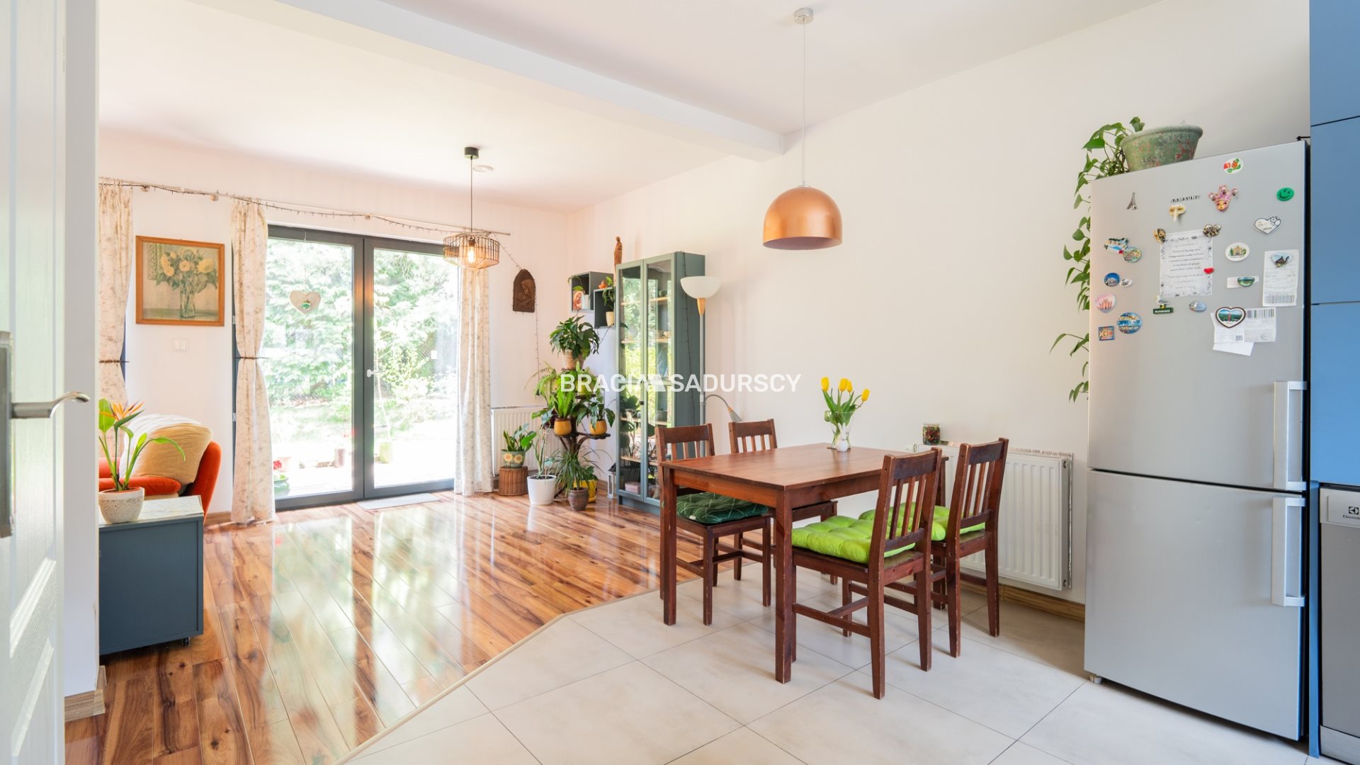 Kameralnie położona działka o pow. 246 m2 jest ogrodzona, bardzo ładnie zagospodarowana, z dużą ilością zieleni, kwiatów, ujęciem wody deszczowej do celów gospodarczych oraz tarasem pokrytym deskami tarasowymi. Możliwość parkowania dwoma samochodami na miejscach przy domu.