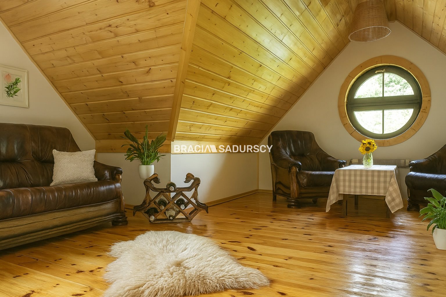 Na sprzedaż niezwykła posiadłość o charakterze rancza, położona na 33-arowej działce z własnym lasem , stworzona dla osób ceniących prywatność, przestrzeń i niepowtarzalny klimat natury. Całość urządzona z dbałością o detale, w spójnym, eleganckim stylu opartym na naturalnym drewnie oraz dachach krytych wiórem osikowym .