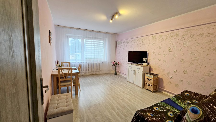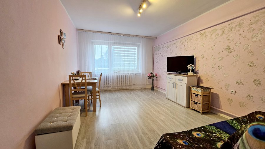 Polecamy Państwu na sprzedażmieszkanie 2 pokojowe, bezczynszowe, położone I piętrze w budynku wielorodzinnym (bloku) o powierzchni użytkowej: 48,40 m2 w Suchaniu. Mieszkanie składa się z: 2 pokoi, kuchni, łazienki z WC oraz przedpokoju. W pokoju na podłodze: panele podłogowe; ściany: malowane. W kuchni na podłodze: terakota; ściany: struktura oraz pas glazury; wyposażenie: meble kuchenne, kuchenka gazowa z piekarnikiem, lodówko-zamrażarka, mikrofalówka. Łazienka z WC wykończona: glazurą i terakotą; wyposażenie: kabina prysznicowa, umywalka z szafką i lustrem, pralka oraz piec c.o. i zasobnik c.w. (bojler). W przedpokoju na podłodze: terakota; na ścianach: struktura. Ogrzewanie: piec c.o. oraz źródło c.w. zasobnik (bojler). Mieszkanie jest w pełni umeblowane i wyposażone. Mieszkanie bezczynszowe, zarządca WM. Z własnością lokalu związany jest udział wynoszący 31/1000 części w nieruchomości wspólnej i działce (piwnica i pomieszczenie gospodarcze - komórka). Ciekawa oferta dla Rodziny lub jako inwestycja pod wynajem (układ mieszkania 3-stronne rozkładowe). Polecamy i Zapraszamy na Prezentację.