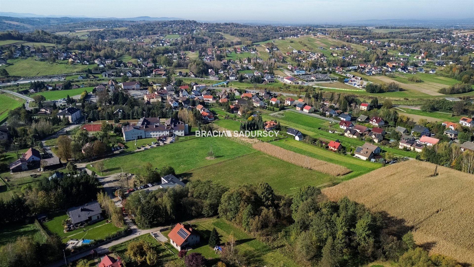 Działka znajduje się wśród luźnej zabudowy jednorodzinnej oraz szkoły i Urzędu