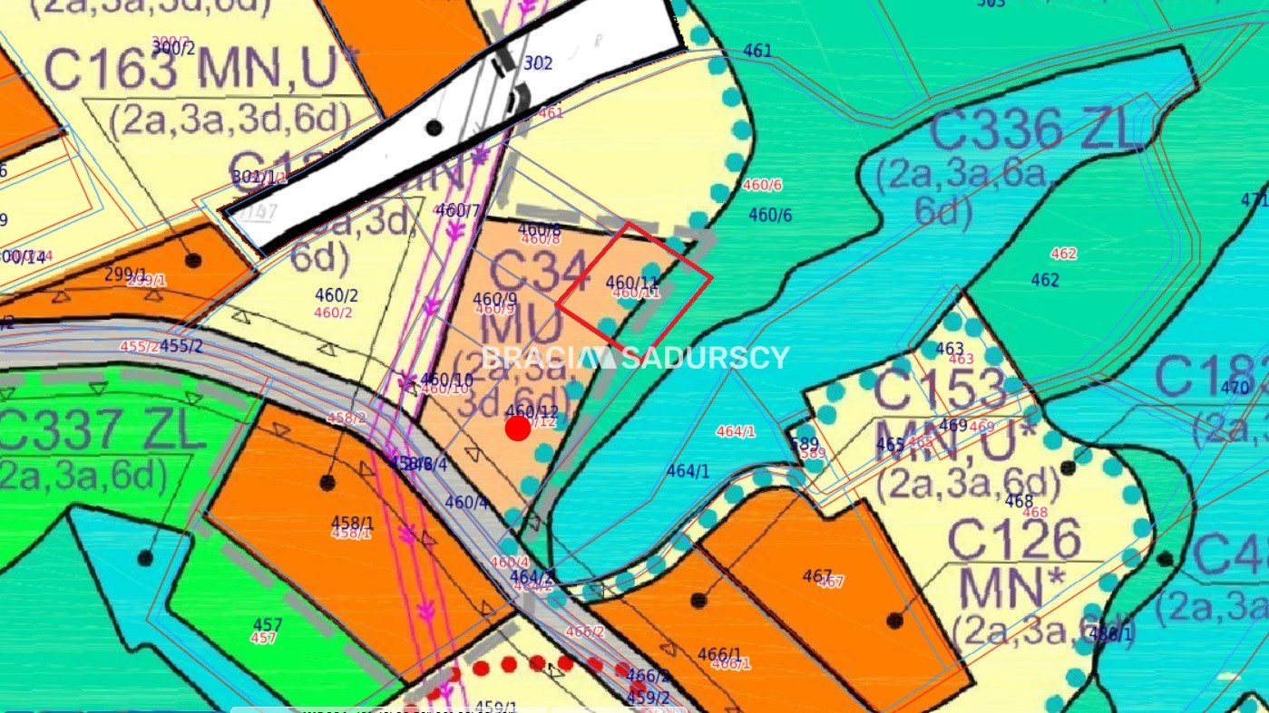 Działka objęta jest miejscowym planem zagospodarowania przestrzennego i składa się z powierzchni przeznaczonej pod zabudowę mieszkaniową jednorodzinną, zagrodową i usługową ( MU - 7,68 ar ) oraz terenów zielonych przeznaczonych do zalesienia ( RD - 4,58 ar ).