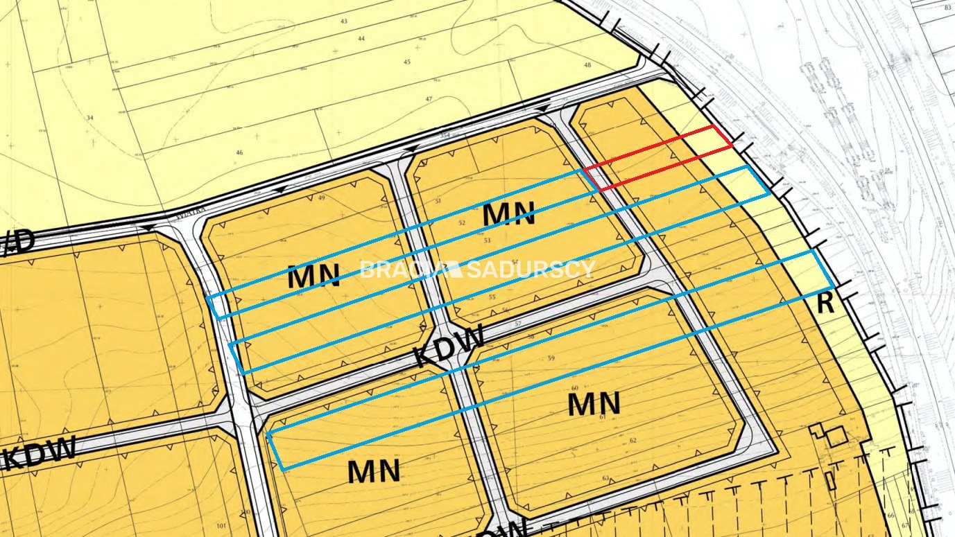 Działka ma powierzchnię wynoszącą 1318 m2, jest objęta ustaleniami miejscowego planu zagospodarowania przestrzennego i składa się z części terenu pod zabudowę mieszkaniową jednorodzinną MN ( 857 m2 ), terenu komunikacji KD (145 m2) i terenu rolnego R (316 m2).