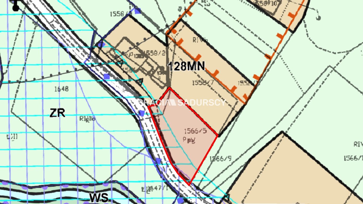 Działka nr 1566/5 zgodnie z MPZP oznaczona jako ZR - teren zieleni naturalnej pełniące rolę połączeń w systemie węzłów i korytarzy ekologicznych. Tereny zieleni naturalnej obejmują obszary stanowiące bezpośrednie sąsiedztwo lasów, zadrzewień i obszary użytkowane rolniczo - łąki, pastwiska oraz tereny odłogowane i nieużytki. Obowiązuje zakaz realizacji nowej zabudowy. Jako przeznaczenie uzupełniające w terenach zieleni naturalnej, pod warunkiem zachowania zgodności z przepisami odrębnymi w zakresie ochrony gruntów rolnych i leśnych, ustala się możliwość lokalizacji: 1) sieci i urządzeń infrastruktury technicznej; 2) dróg i dojazdów nie wydzielonych, zatok i stanowisk postojowych, ścieżek rowerowych, ciągów pieszych i szlaków turystycznych;
