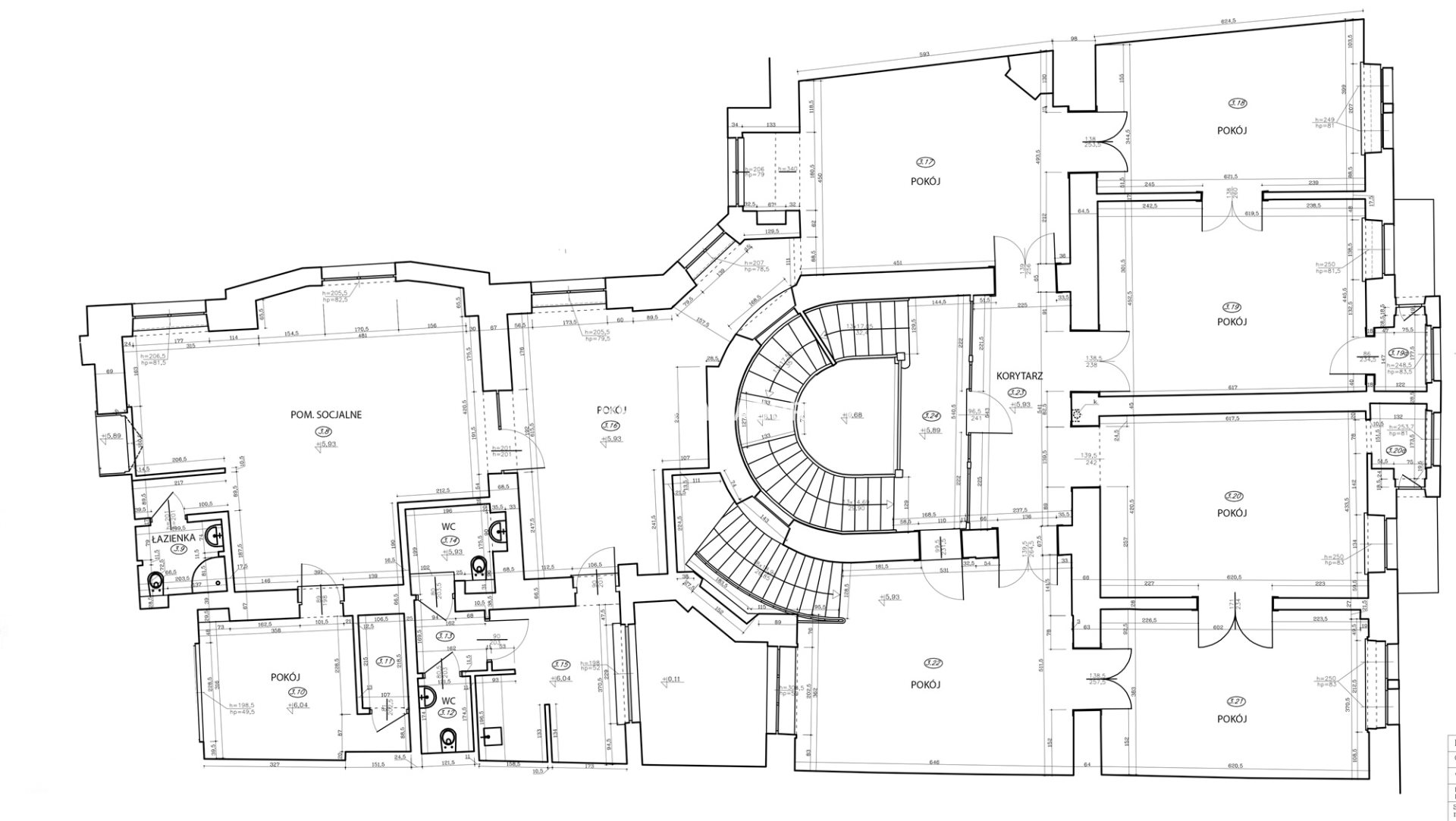 9 pomieszczeń, 2 łazienki, WC, kuchnia, pomieszczenie gospodarcze, korytarz