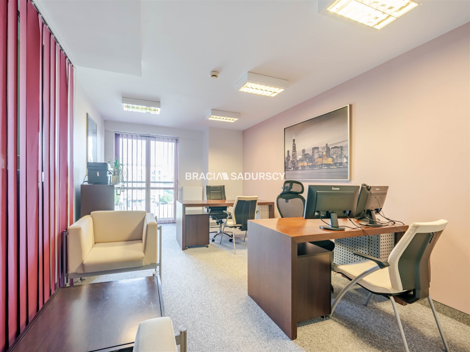 recepcja, 2 sale konferencyjne,8 wydzielonych pomieszczeń biurowych