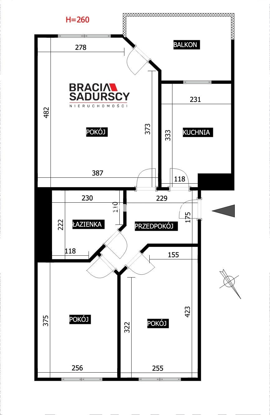 - trzech niezależnych pokoi ( największy z wyjściem na balkon),