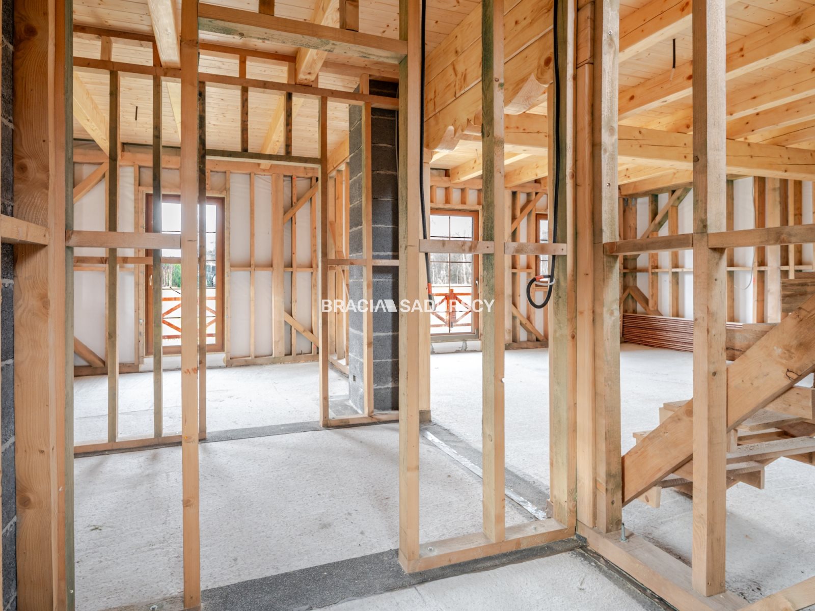 Dom wolnostojący w stanie surowym zamkniętym , wybudowany w 2024 roku z bali drewnianych , co zapewnia wyjątkowy klimat i ponadczasowy charakter.