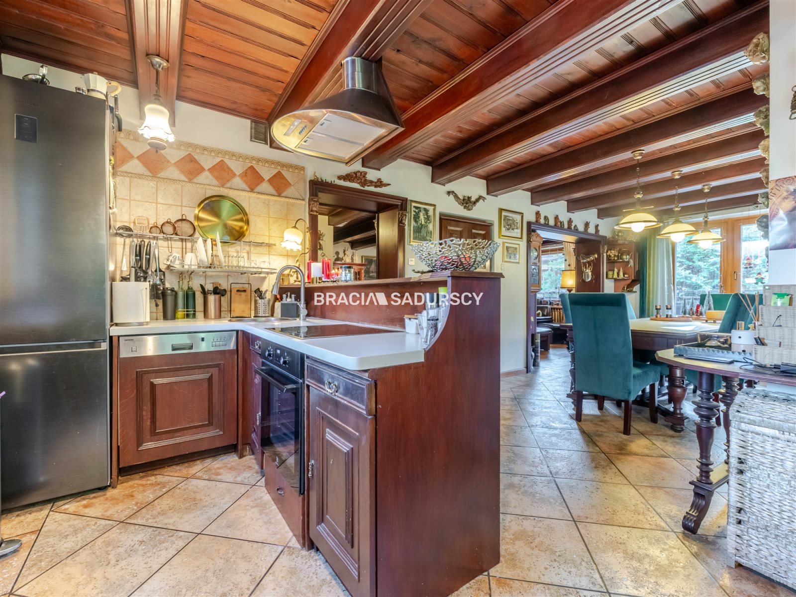 W salonie, jadalni i kuchni na uwagę zasługuje modrzewiowe zwieńczenie sufitu , podkreślające wyjątkowy charakter pomieszczeń.