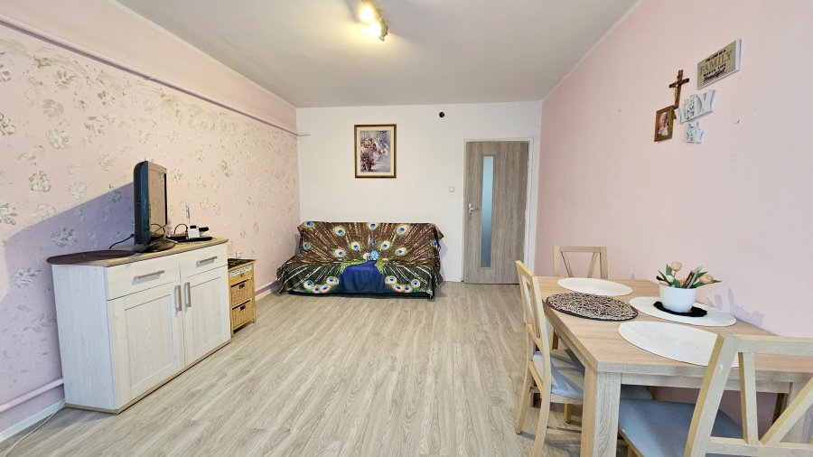 Polecamy Państwu na sprzedażmieszkanie 2 pokojowe, bezczynszowe, położone I piętrze w budynku wielorodzinnym (bloku) o powierzchni użytkowej: 48,40 m2 w Suchaniu. Mieszkanie składa się z: 2 pokoi, kuchni, łazienki z WC oraz przedpokoju. W pokoju na podłodze: panele podłogowe; ściany: malowane. W kuchni na podłodze: terakota; ściany: struktura oraz pas glazury; wyposażenie: meble kuchenne, kuchenka gazowa z piekarnikiem, lodówko-zamrażarka, mikrofalówka. Łazienka z WC wykończona: glazurą i terakotą; wyposażenie: kabina prysznicowa, umywalka z szafką i lustrem, pralka oraz piec c.o. i zasobnik c.w. (bojler). W przedpokoju na podłodze: terakota; na ścianach: struktura. Ogrzewanie: piec c.o. oraz źródło c.w. zasobnik (bojler). Mieszkanie jest w pełni umeblowane i wyposażone. Mieszkanie bezczynszowe, zarządca WM. Z własnością lokalu związany jest udział wynoszący 31/1000 części w nieruchomości wspólnej i działce (piwnica i pomieszczenie gospodarcze - komórka). Ciekawa oferta dla Rodziny lub jako inwestycja pod wynajem (układ mieszkania 3-stronne rozkładowe). Polecamy i Zapraszamy na Prezentację.