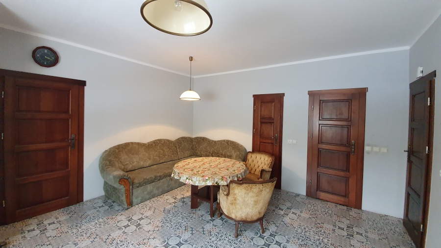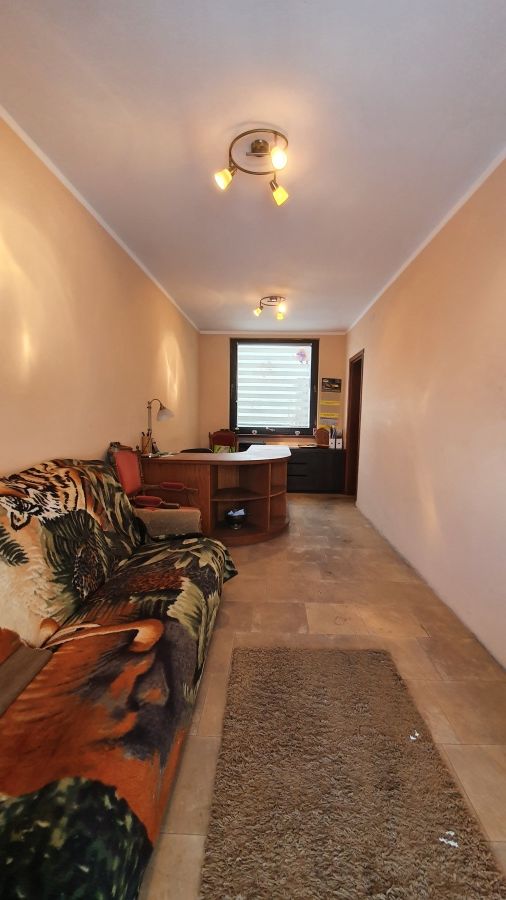 Lokal II - pokój dzienny z aneksem kuchennym, 2 sypialnie, łazienka z WC, przedpokój. Budynek II - pow. zabudowy: 28 m2 - gospodarczy (garaż z kanałem); Budynek III - pow. zabudowy: 259 m2 - gospodarczy (stolarnia); Budynek IV - pow. zabudowy: 50 m2 - gospodarczy (częściowo rozebrany).