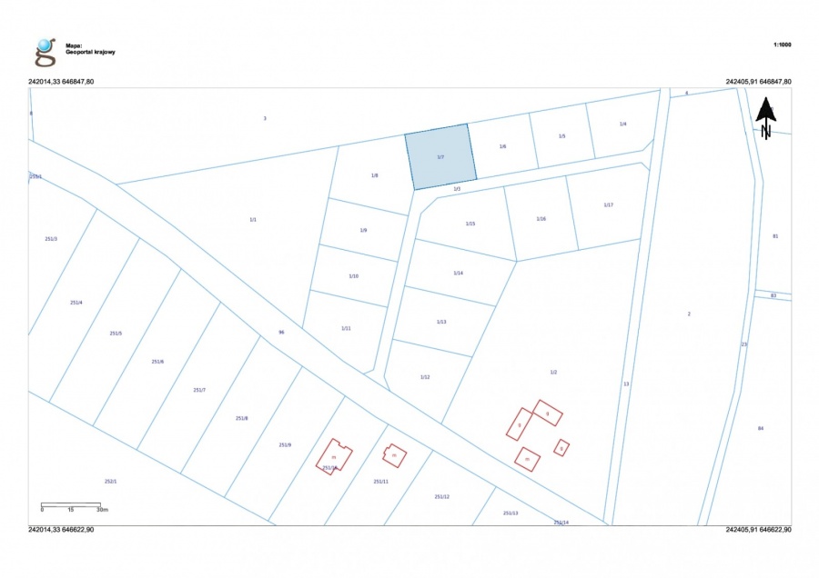 Polecamy Państwu DZIAŁKĘ NR 1/7 o pow. 942 m2, położoną w miejscowości Długołęka, obręb Długołęka, Gm. Nowogard, pow. goleniowski, woj. zachodniopomorskie. Nieruchomość znajduje się w kompleksie 17 działek (15 przeznaczonych do sprzedaży, w tym dz. nr 1/3 stanowi drogę wewnętrzną (udział). Działka ma dostęp do drogi publicznej. WYDANE WARUNKI ZABUDOWY: BUDYNEK MIESZKALNY JEDNORODZINNY WRAZ Z URZĄDZENIAMI BUDOWLANYMI. Polecamy z uwagi na lokalizację (6 km od Nowogardu), lokatę kapitału, a przede wszystkim atrakcyjną, niską cenę 69 zł/m2 do negocjacji. Polecamy i Zapraszamy na Prezentację. INFORMACJE PODSTAWOWE: