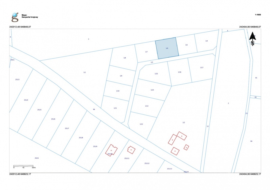 Polecamy Państwu DZIAŁKĘ NR 1/6 o pow. 937 m2, położoną w miejscowości Długołęka, obręb Długołęka, Gm. Nowogard, pow. goleniowski, woj. zachodniopomorskie. Nieruchomość znajduje się w kompleksie 17 działek (15 przeznaczonych do sprzedaży, w tym dz. nr 1/3 stanowi drogę wewnętrzną (udział). Działka ma dostęp do drogi publicznej. WYDANE WARUNKI ZABUDOWY: BUDYNEK MIESZKALNY JEDNORODZINNY WRAZ Z URZĄDZENIAMI BUDOWLANYMI. Polecamy z uwagi na lokalizację (6 km od Nowogardu), lokatę kapitału, a przede wszystkim atrakcyjną, niską cenę 69 zł/m2 do negocjacji. Polecamy i Zapraszamy na Prezentację. INFORMACJE PODSTAWOWE: