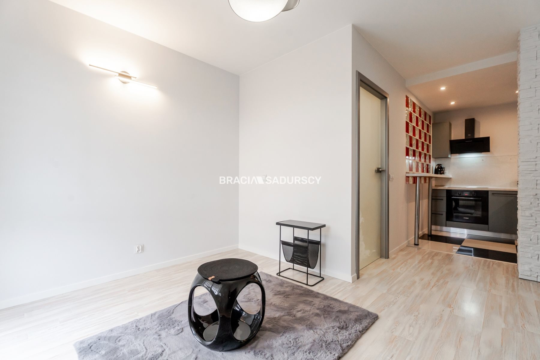 • jasny salon połączony z kuchnią,