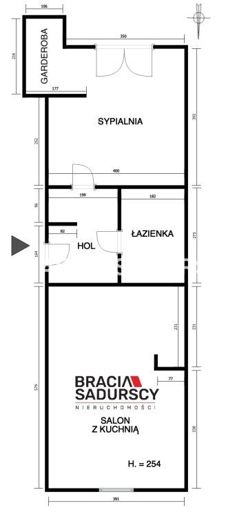 - salon z aneksem kuchennym o łacznej pow. 22,5 m 2 ;