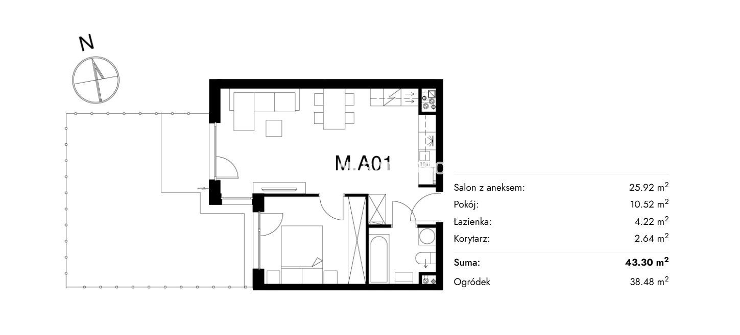Każde mieszkanie posiada balkon, taras lub prywatny ogródek , zapewniając dodatkową przestrzeń do relaksu i odpoczynku.