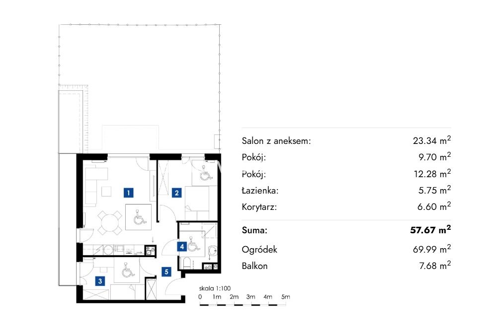 Każde mieszkanie posiada balkon, taras lub prywatny ogródek , zapewniając dodatkową przestrzeń do relaksu i odpoczynku.