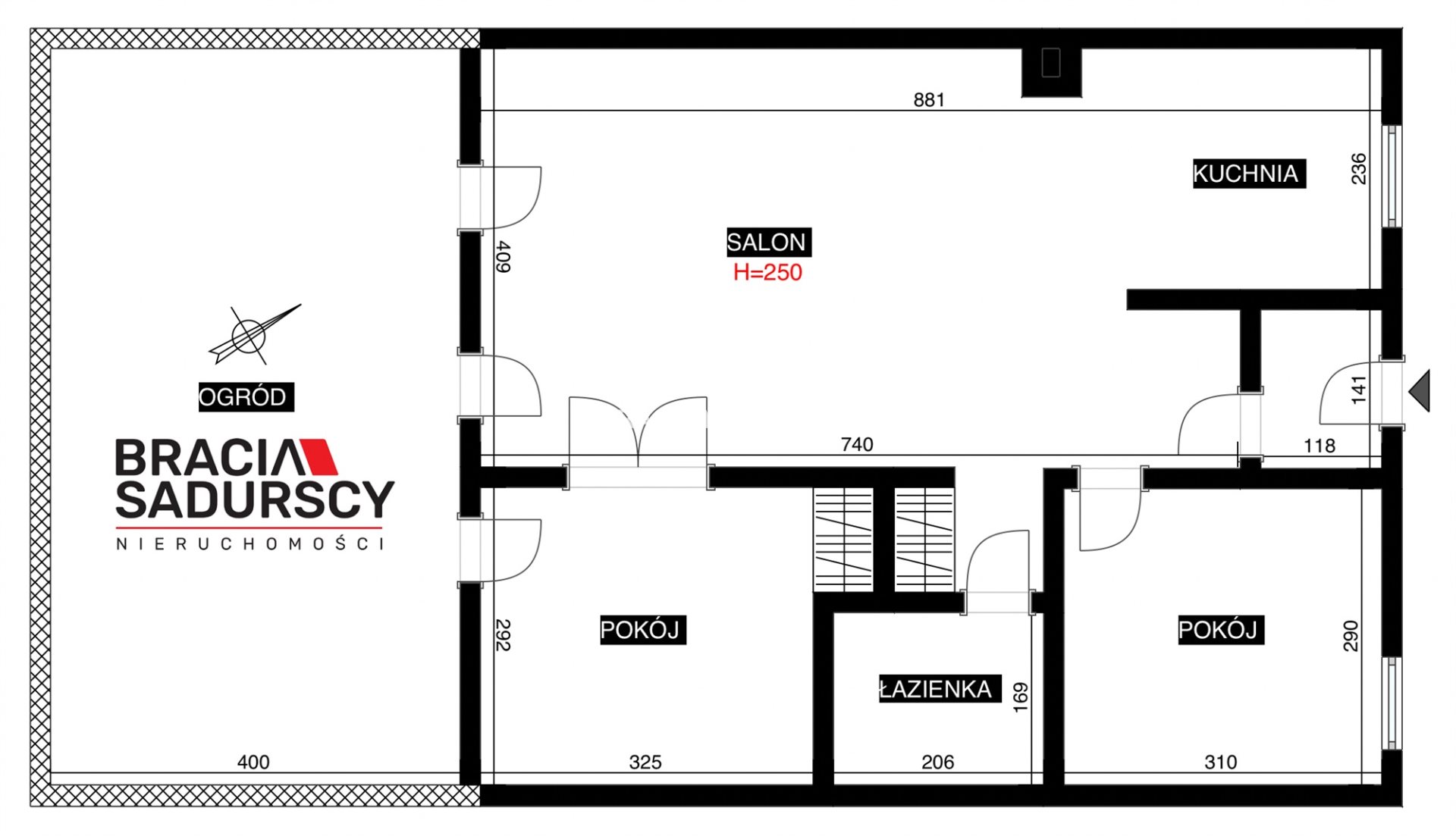 - 3 pokoje (2 sypialnie + salon z kuchnią);