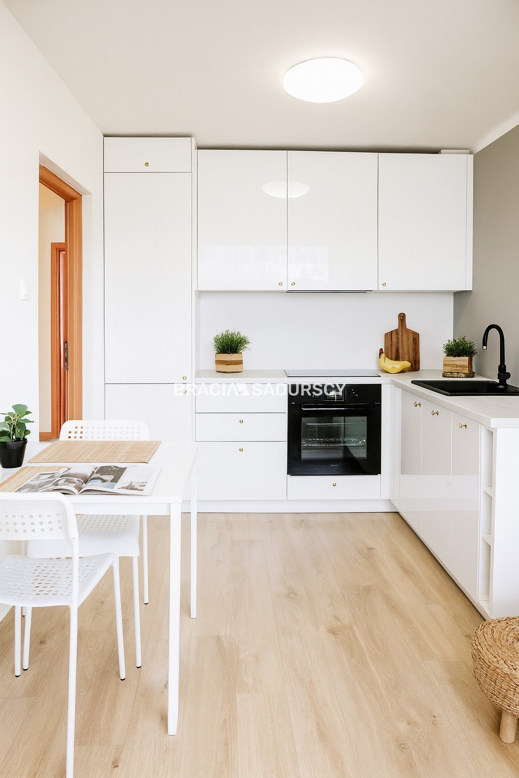 Nowe wyposażenie: kuchnia: meble w zabudowie, okap, piekarnik, płyta indukcyjna, zmywarka, stół, krzesła, lodówka; sypialnia: duże łóżko z materacem, duża szafa, komoda; salon: kanapa, fotel, stolik, szafka z barkiem; łazienka: pralka, prysznic, lustro, WC, umywalka; przedpokój: przestronna szafa.