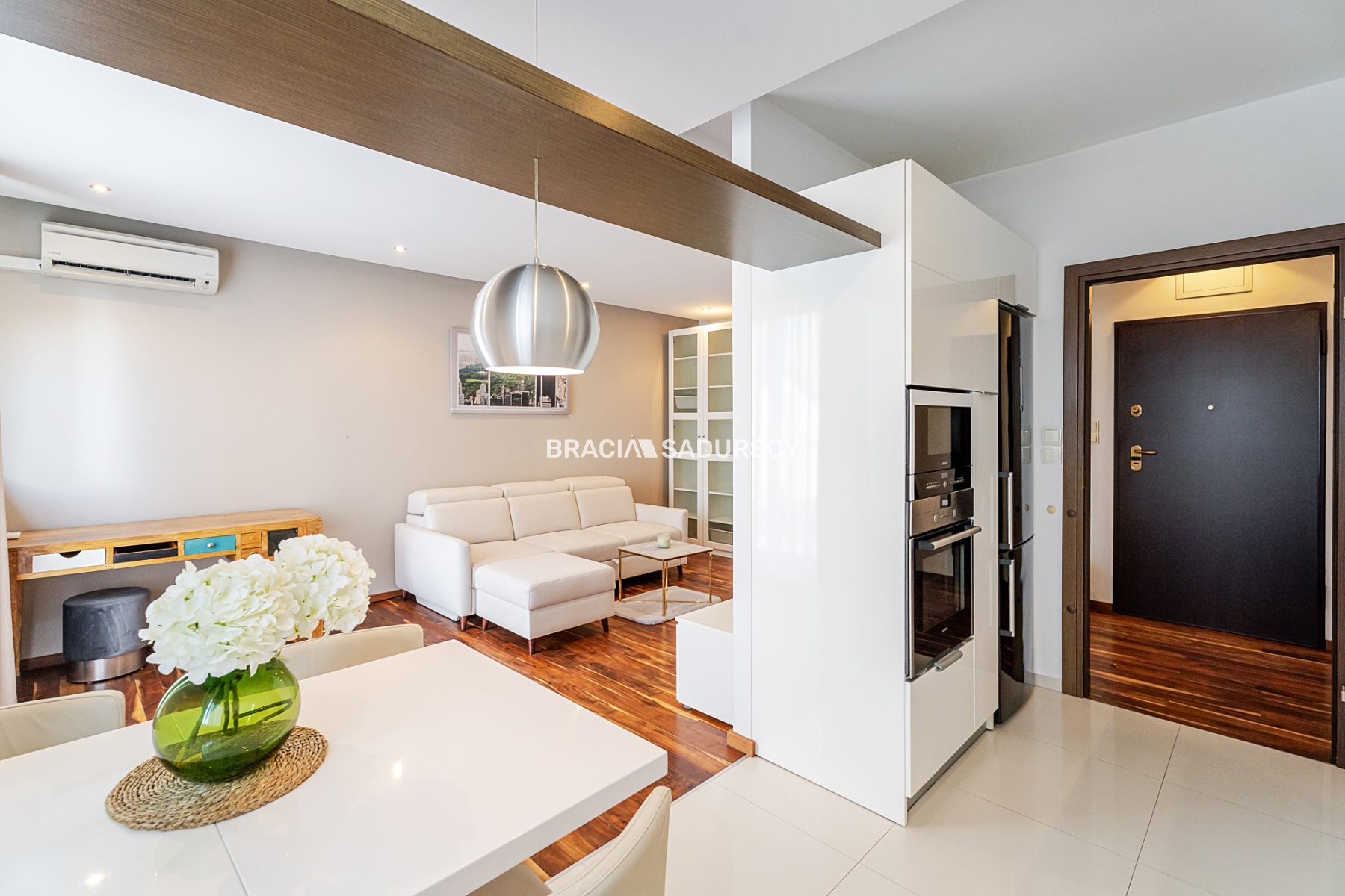 Wnętrze jest urządzone w nowoczesnym, wygodnym stylu - docenisz je szczególnie, jeśli lubisz mieszkania „do życia”, z przemyślanym przechowywaniem i poczuciem przestrzeni oraz estetyki.