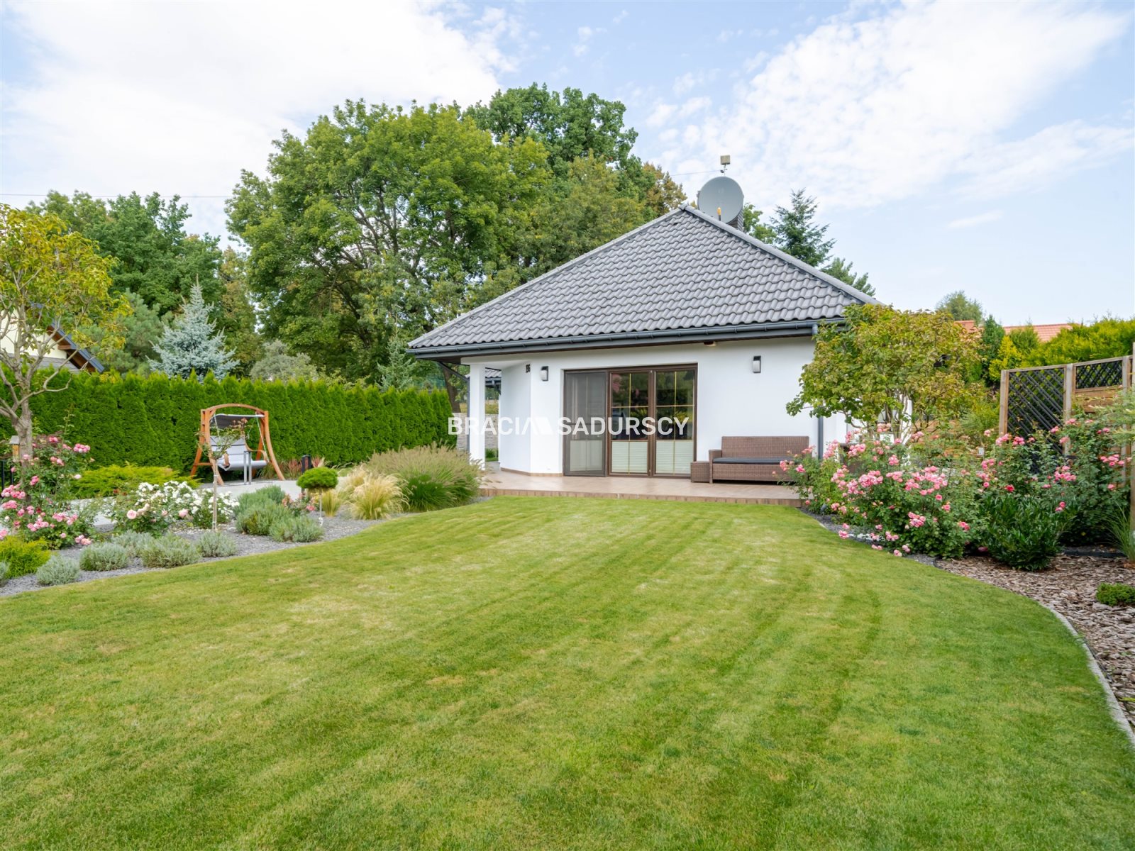 Wartością dodaną nieruchomości jest duży ogród z pięknymi nasadzeniami, ławką, huśtawką - gdzie można wypoczywać całą rodziną, ciesząc się ciszą i bliskością przyrody. Dostęp do drogi publicznej - co ważne ślepej, więc ruch jest tu niewielki.