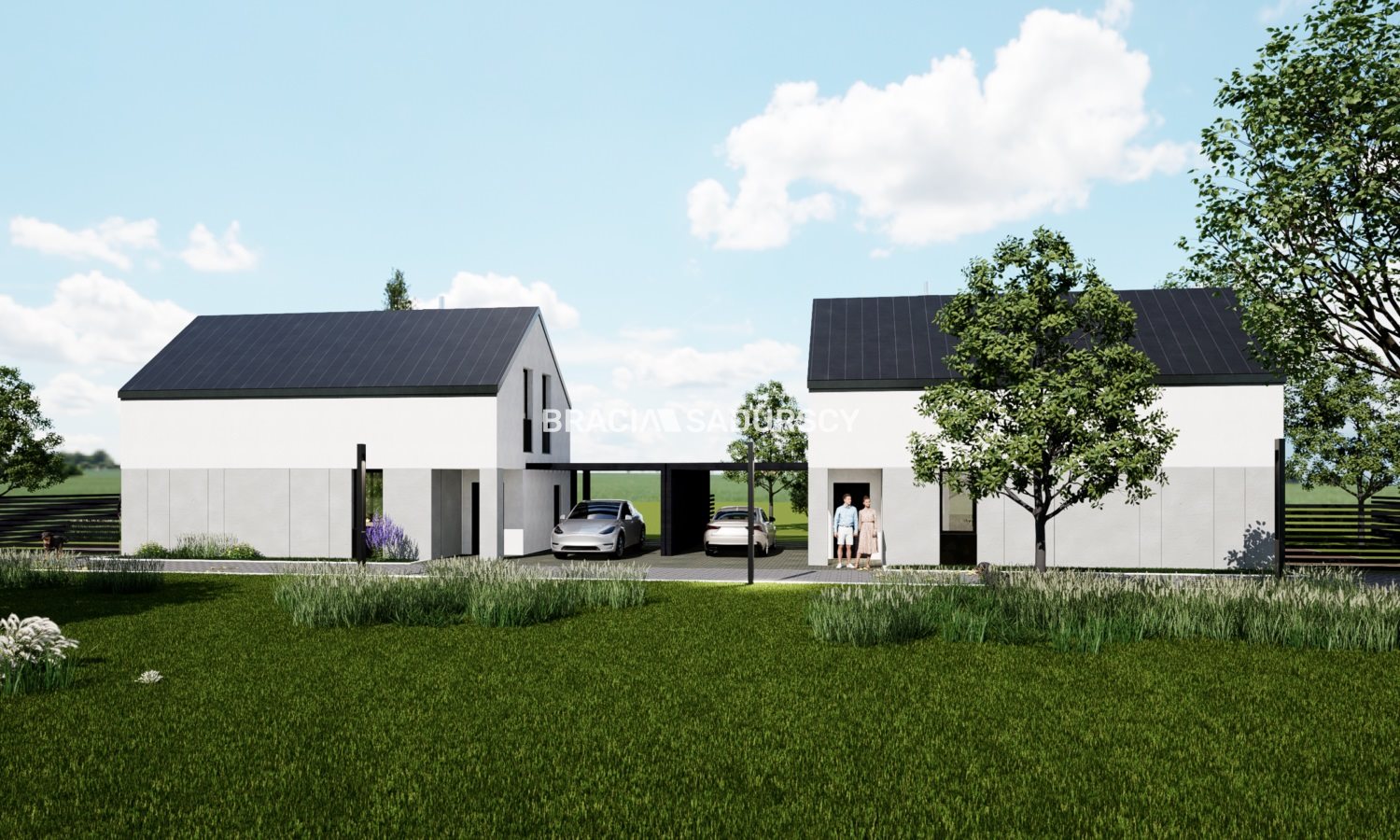 Całość inwestycji: domów, strefy zielonej, obejścia, wjazdu z kostki brukowej tworzy spójną nowoczesną mocno atrakcyjną jakość.