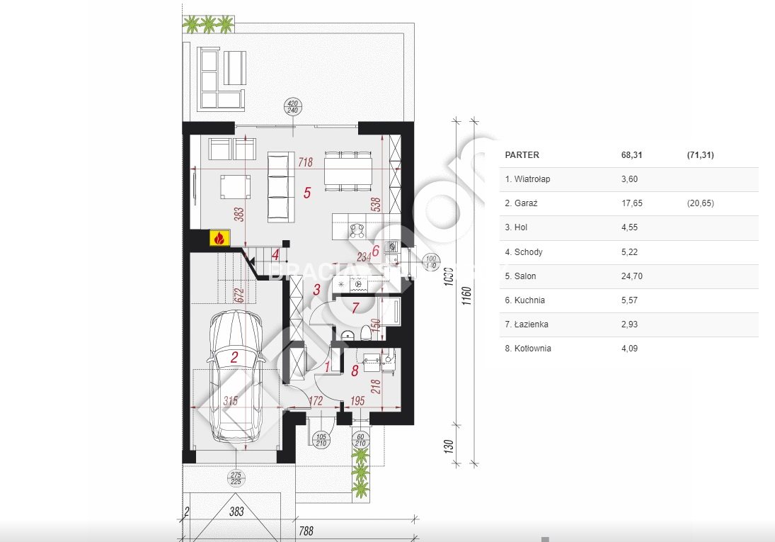 Dom sprzedawany w stanie deweloperskim. Projekt obejmuję wykonanie instalacji wewnętrznych i zewnętrznych. Teren zagospodarowany zielenią i ogrodzony, podjazdy i opaska wokół budynku oraz taras wyłożone kostką brukową, wjazd przez bramę na pilota.