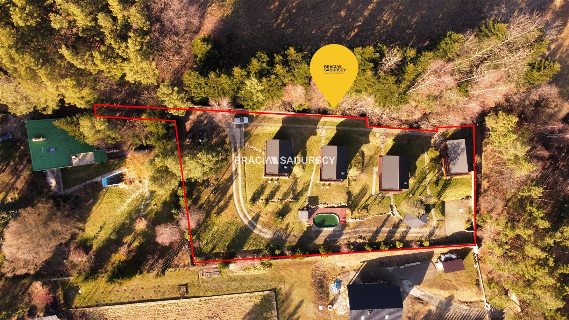 Nieruchomość jest w całości ogrodzona leży na działce o powierzchni 32 ary
