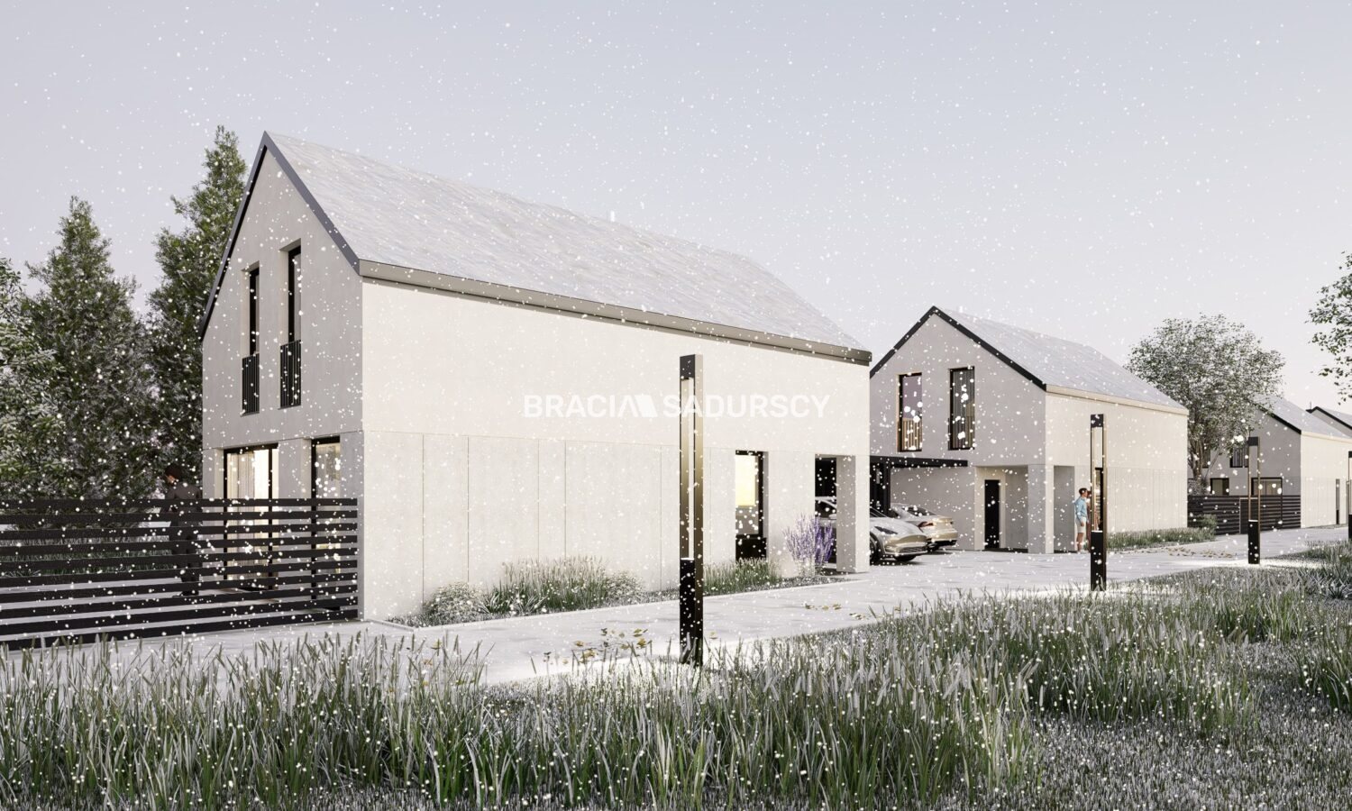 Całość inwestycji: domów, strefy zielonej, obejścia, wjazdu z kostki brukowej tworzy spójną nowoczesną mocno atrakcyjną jakość.