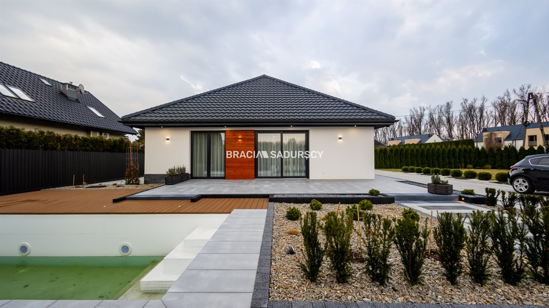 Branice. Gustownie urządzony i wyposażony nowy dom wolnostojący z basenem, na działce o pow. 0.12ha.