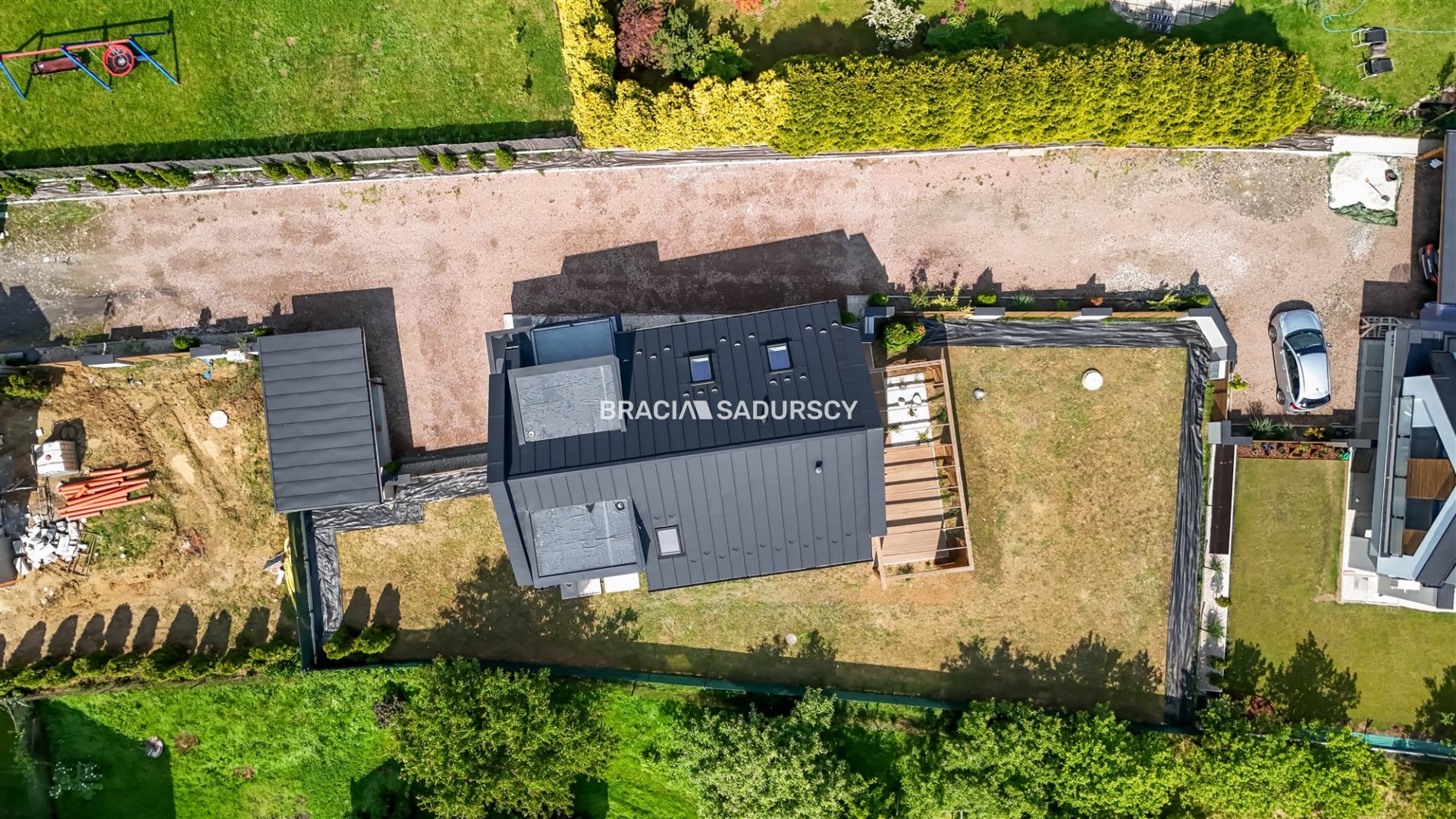 Dom spełnia najwyższe standardy nowoczesnego budownictwa: zastosowano wysokiej jakości ocieplenie ścian i dachu, a także okna z trzyszybowym pakietem, co zapewnia doskonałą izolację termiczną i akustyczną.
