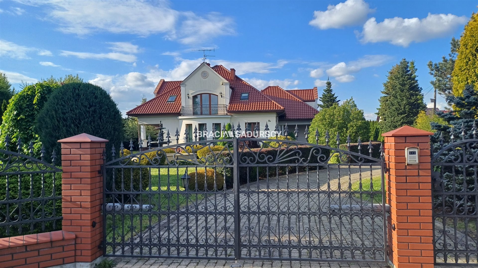 Przestronny, starannie wykończony dom o charakterze "dworkowym", jednorodzinny z możliwością podziału na dwurodzinny (z osobnym wejściem). Dom ukończony w 2008 r., zlokalizowany na spokojnym osiedlu domów jednorodzinnych. Wybudowany z pustaka ceramicznego (porotherm) grubości 44 cm, z tynkiem zewnętrznym ocieplającym (3-4 cm). Dach kryty dachówka ceramiczną, okna drewniane. Ogrzewanie centralne gazowe piecem dwufunkcyjnym, częściowo podłogowe, oraz dodatkowo kominek z nadmuchem na poddaszu. Odkurzacz centralny. Podłogi z naturalnego drewna oraz gresu, częściowo wykończenia drewnem egzotycznym (Merbau) i kamieniem naturalnym. Parapety zewnętrzne i taras z granitu. Garaż w bryle budynku, 2-stanowiskowy. Dom posiada saunę oraz profesjonalnie wyposażona siłownię. W łazience wanna z hydromasażem oraz prysznic z masażem. W ogrodzie system nawadniający i fontanna wykonana z mosiądzu. Całość ogrodzona. Woda z sieci miejskiej, kanalizacja miejska.