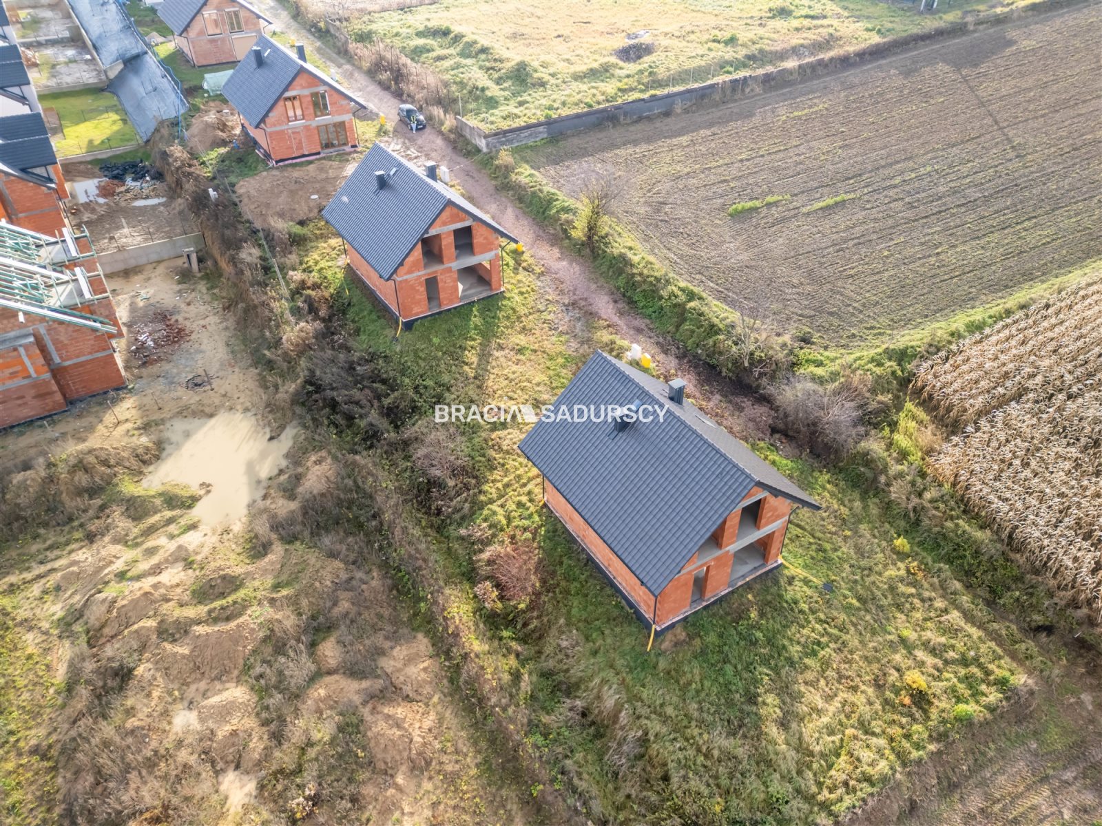 Jeden dom na działce 579m2 cena 599 000zł, drugi ma działkę 582 m2 cena 615000zł, wymiary działki 28mx20m.