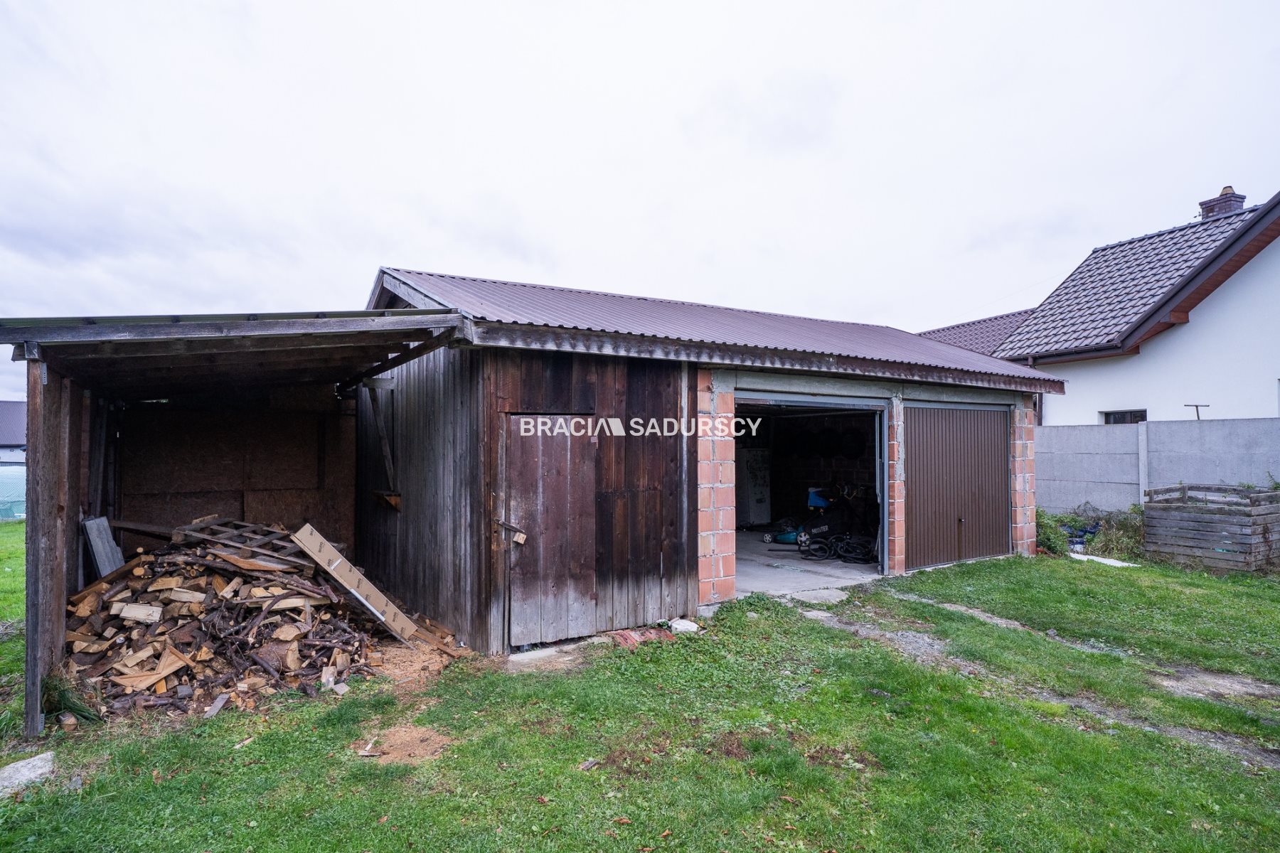 Budynek gospodarczy to garaż dwustanowiskowy oraz dodatkowe cześć typu drewutnia, ponad 4o m2.