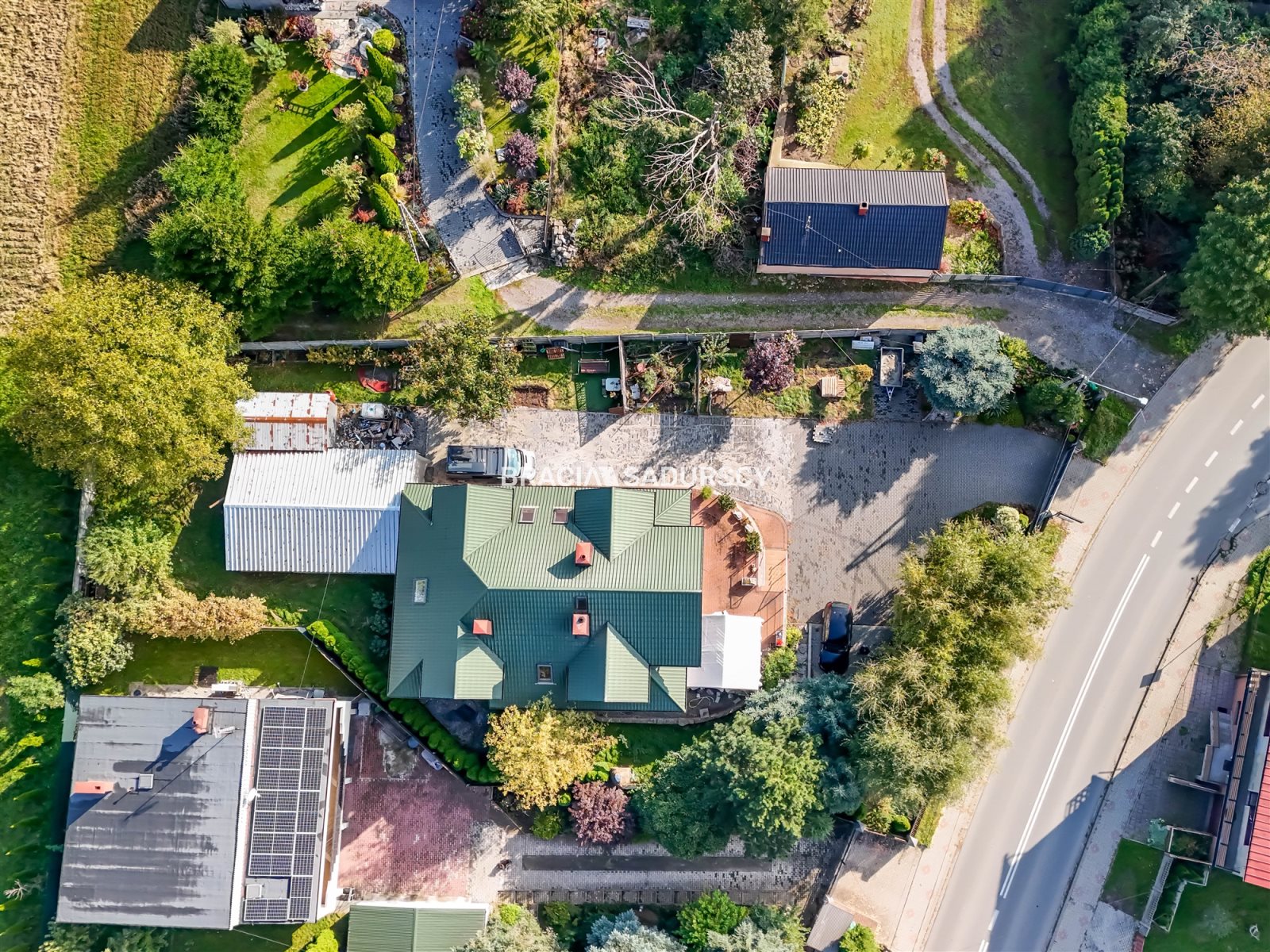 Nieruchomość znajduje się na działce o powierzchni 12 arów i obejmuje budynek murowany z pustaka max, ocieplony styropianem. Dach pokryty jest blachodachówką (z możliwością wymiany na dachówkę), okna PCV. Ogrzewanie zapewnia piec na paliwo stałe z kotłowni na poziomie -1, natomiast gaz znajduje się już na działce - istnieje możliwość podłączenia.
