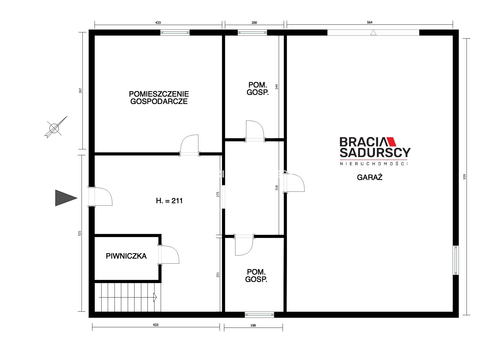 - PRZYZIEMIE (parter) w skład którego wchodzą: garaż ok. 50 m2 , pomieszczenia gospodarcze 17m2, 7 m2, 5 m2 oraz hall czyli wejście do budynku ok. 23 m2