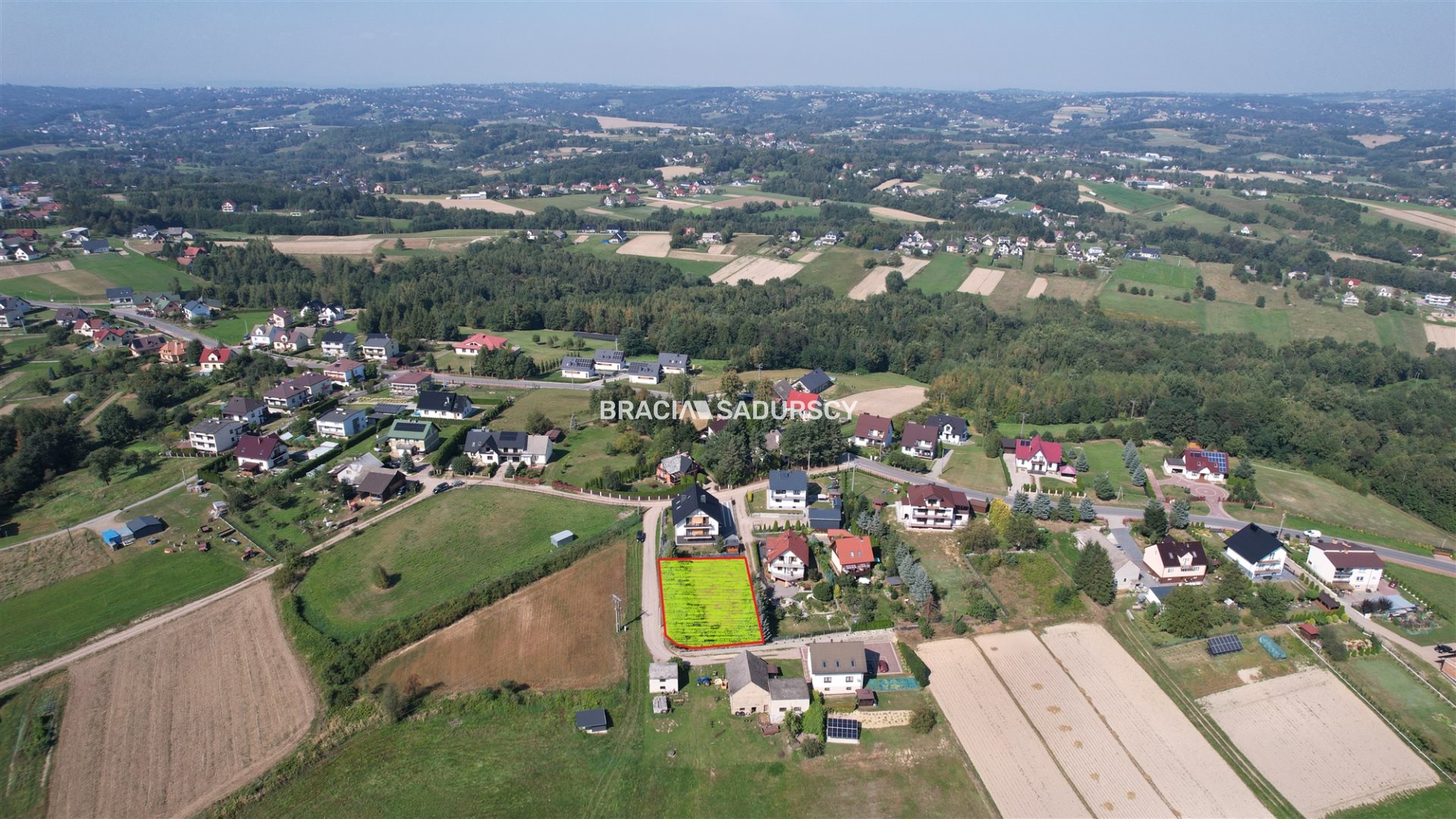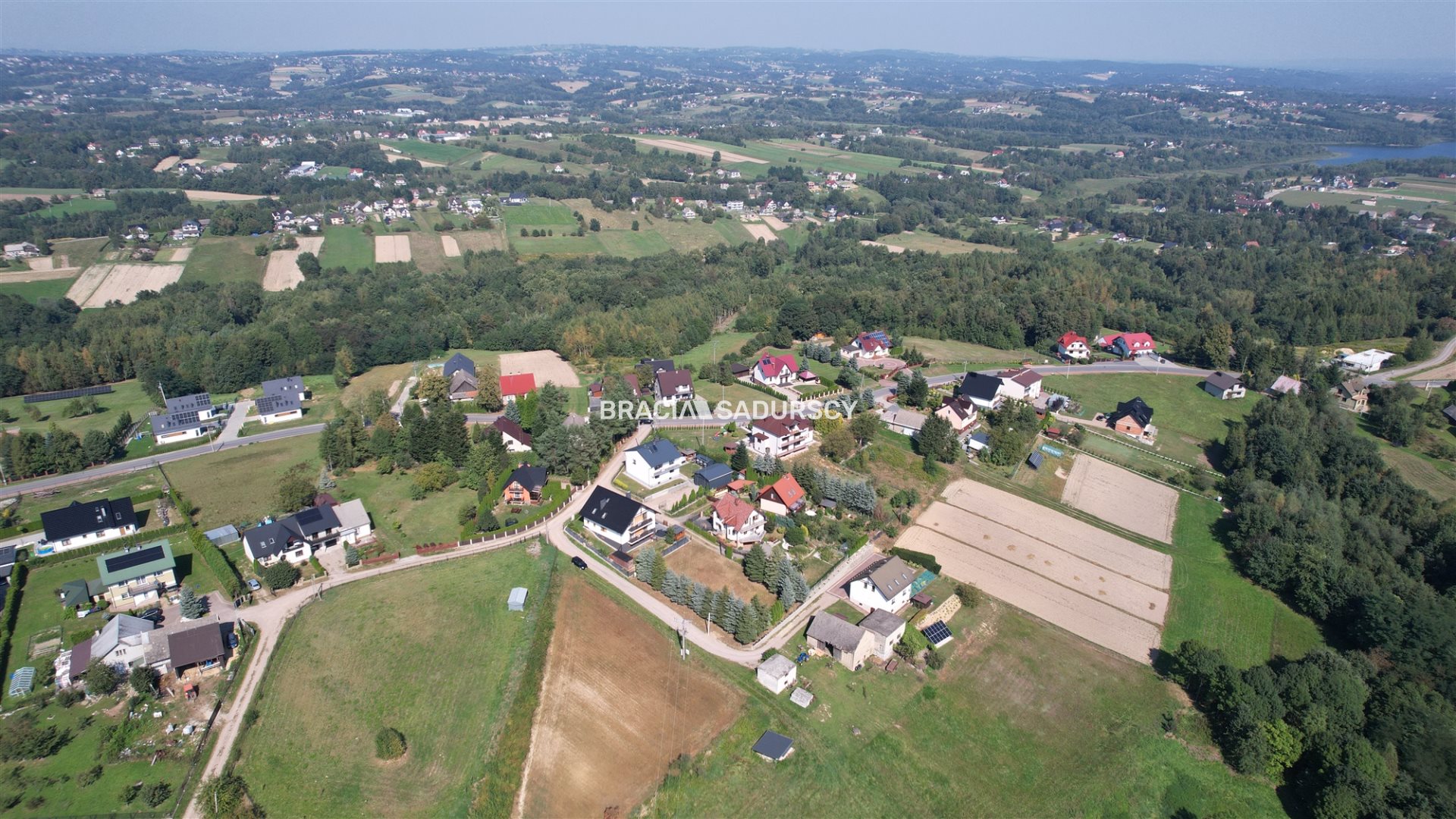 Działka posiada prawnie zapewniony dostęp do drogi publicznej poprzez służebność wpisaną w księdze wieczystej na odcinku ok. 32 m drogą szutrową. Atrakcyjna lokalizacja działki zapewnia ciszę, spokój i prywatność oraz bliskość terenów rekreacyjnych Jeziora Dobczyckiego. Jednocześnie na wygodę codziennego funkcjonowania pozwala bliskość podstawowych obiektów użyteczności publicznej. W pobliżu znajdują się m.in.: sklep - 150 m, szkoła - 1,3 km Z działki można się także szybko dostać do Myślenic (15 minut), natomiast dojazd na południe Krakowa zajmuje do 30 minut.
