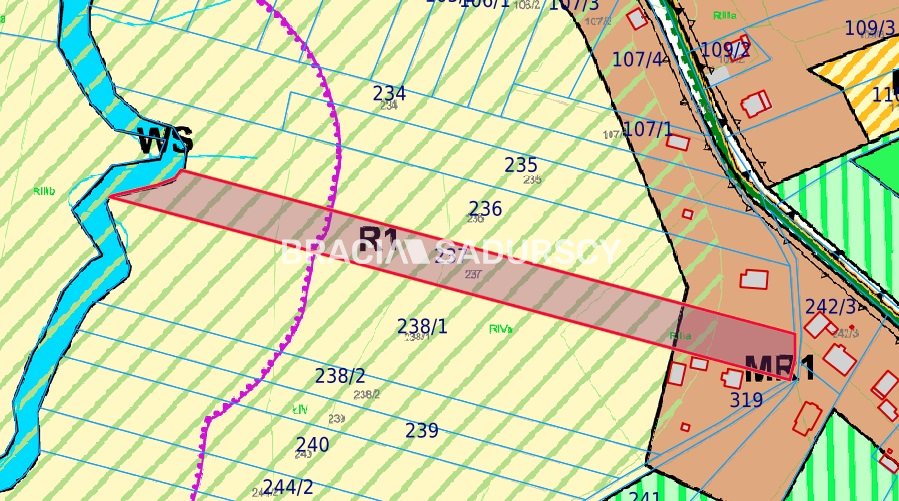 Działka jest objęta Miejscowym Planem Zagospodarowania Przestrzennego i oznaczona jako MR1.