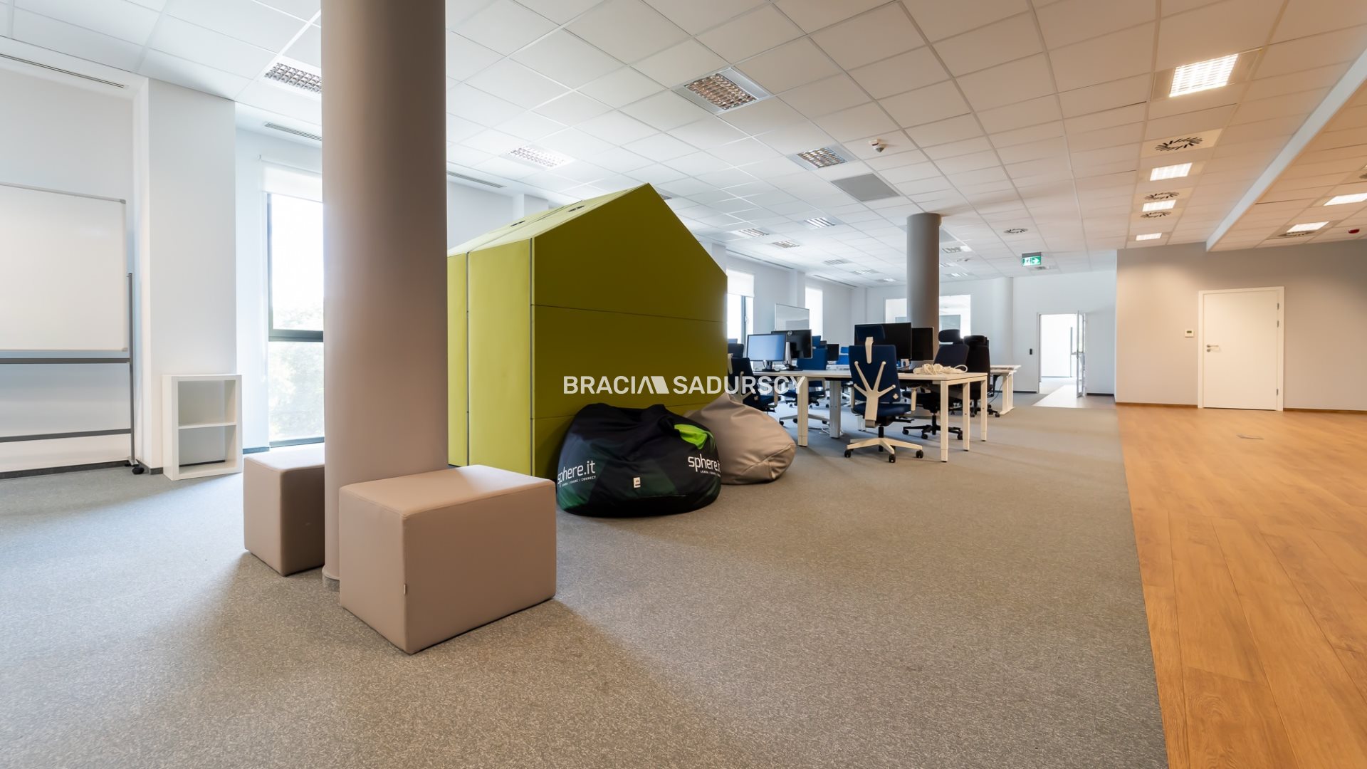 Lokal znajduje się na 3 piętrze, składa się z dwóch powierzchni open space (łącznie ok. 60 stanowisk pracy), sali konferencyjnej, 3 sal spotkań, kuchni, serwerowni, magazynu.