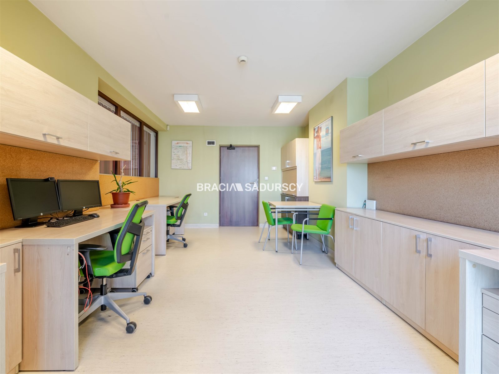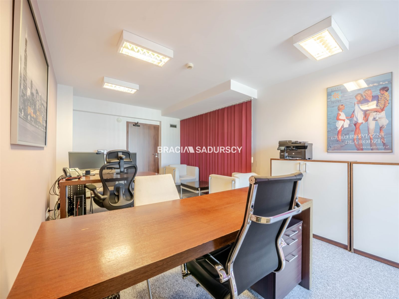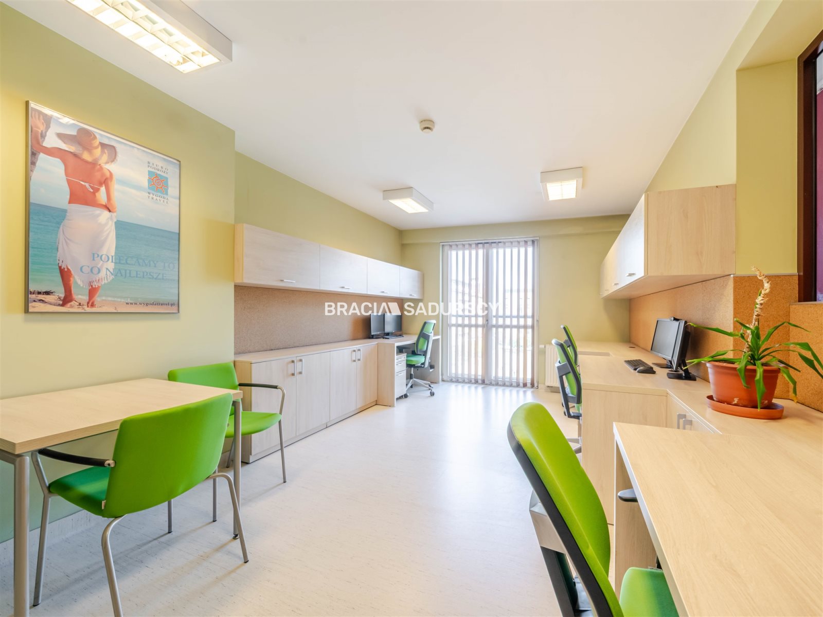 recepcja, 2 sale konferencyjne,8 wydzielonych pomieszczeń biurowych