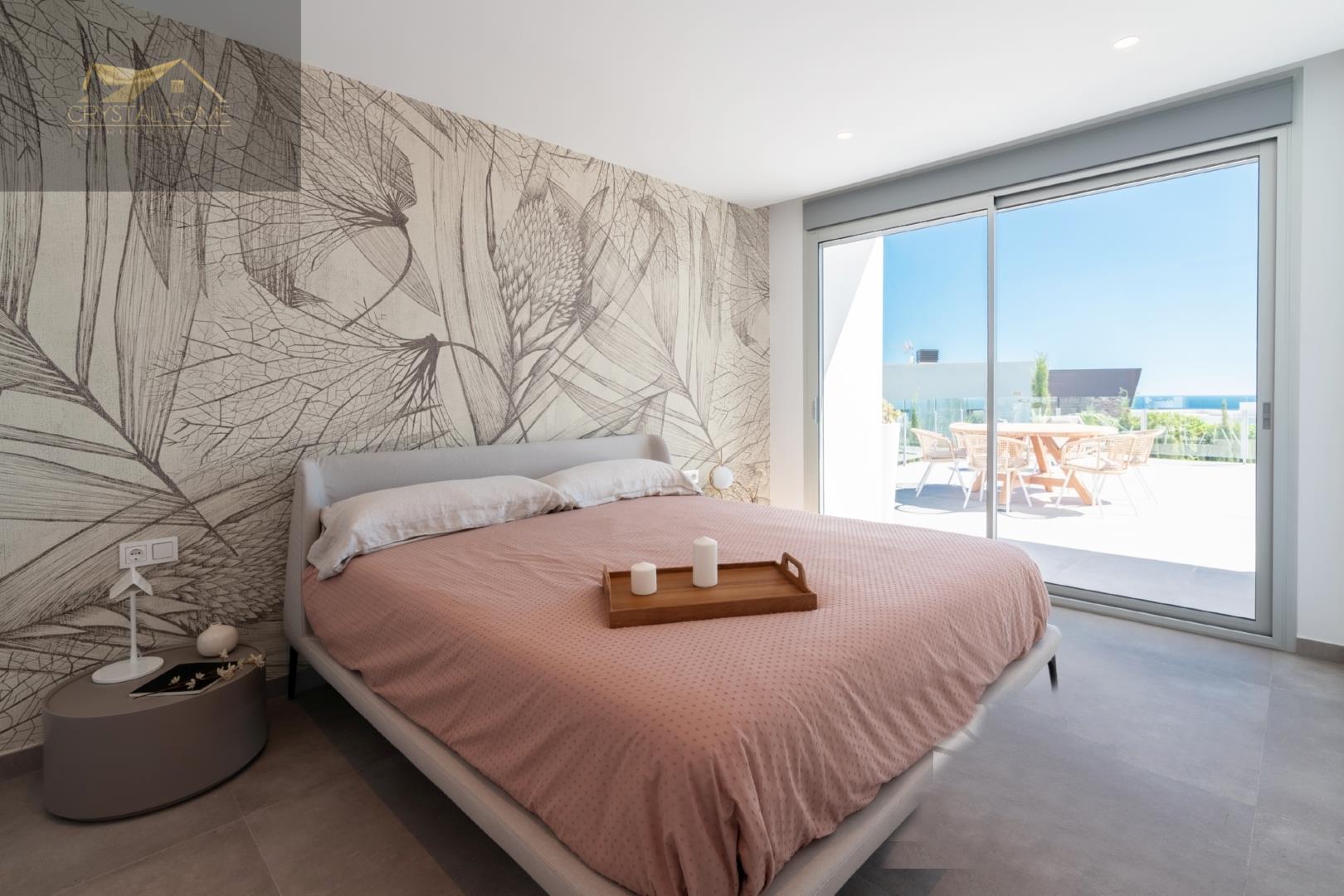 Willa ta posiada trzy sypialnie i dwie łazienki. Główna sypialnia jest bardzo jasna, z łazienką, garderobą i bezpośrednim dostępem do głównego tarasu, gdzie znajduje się basen bez krawędzi.