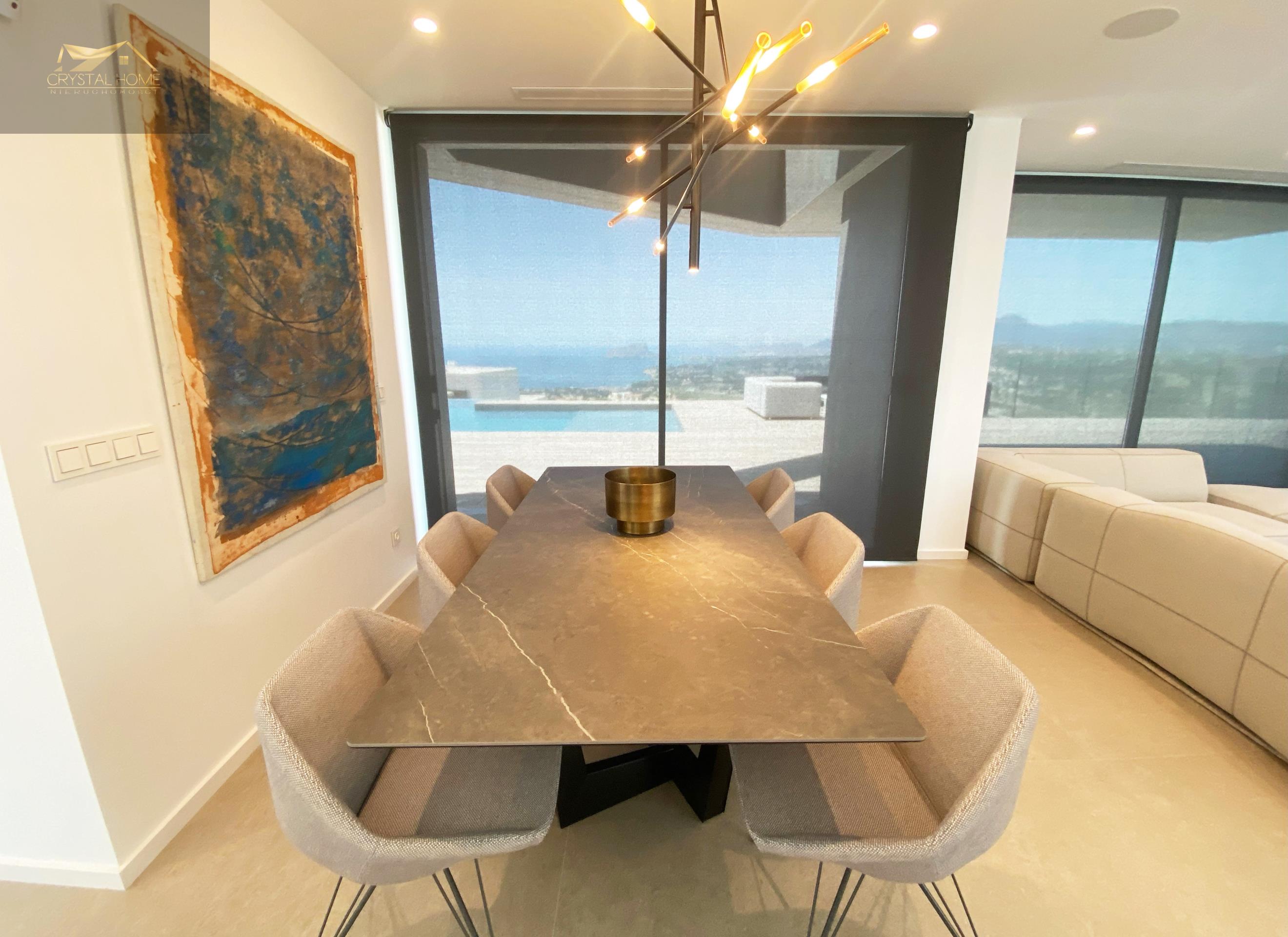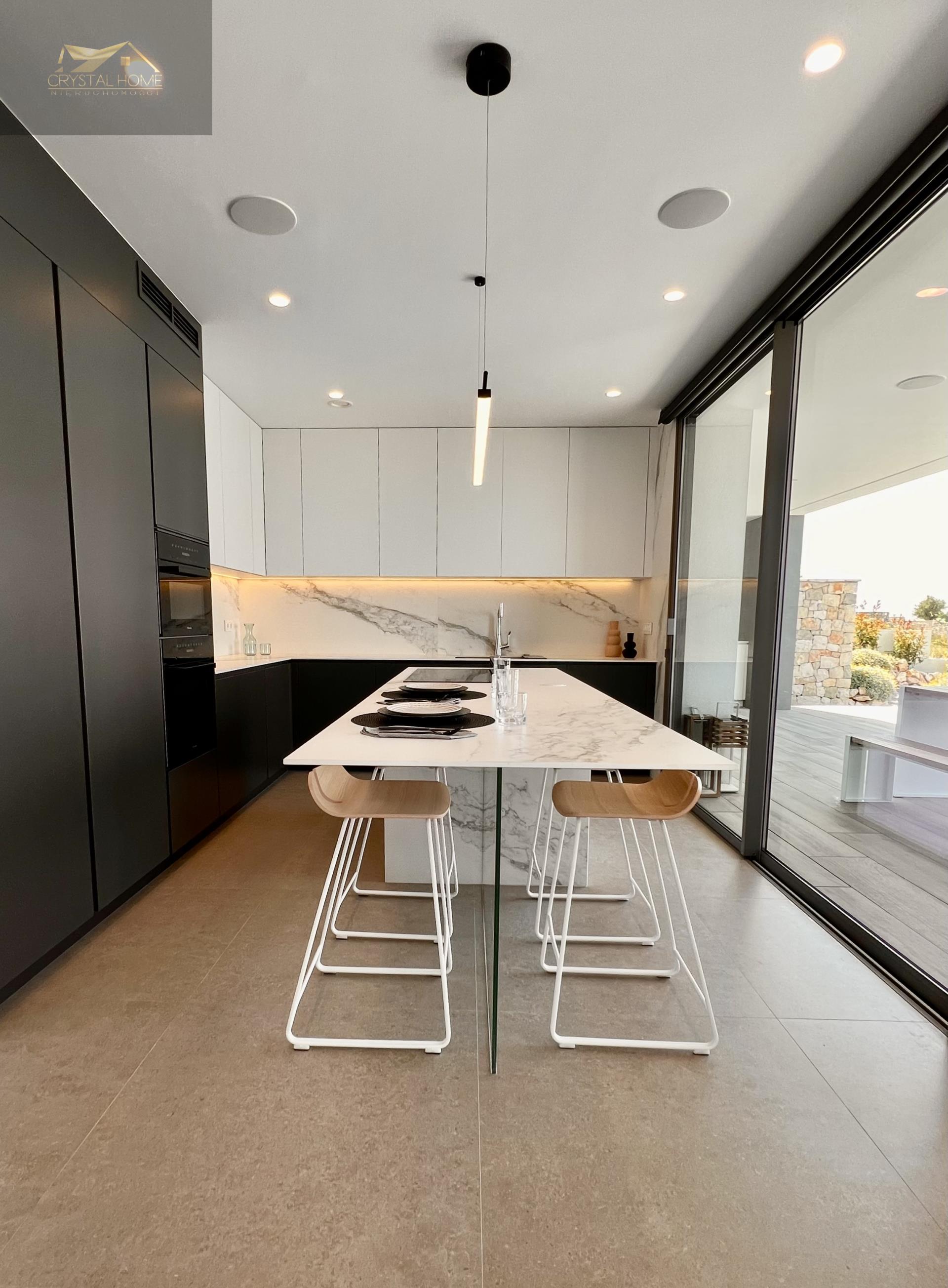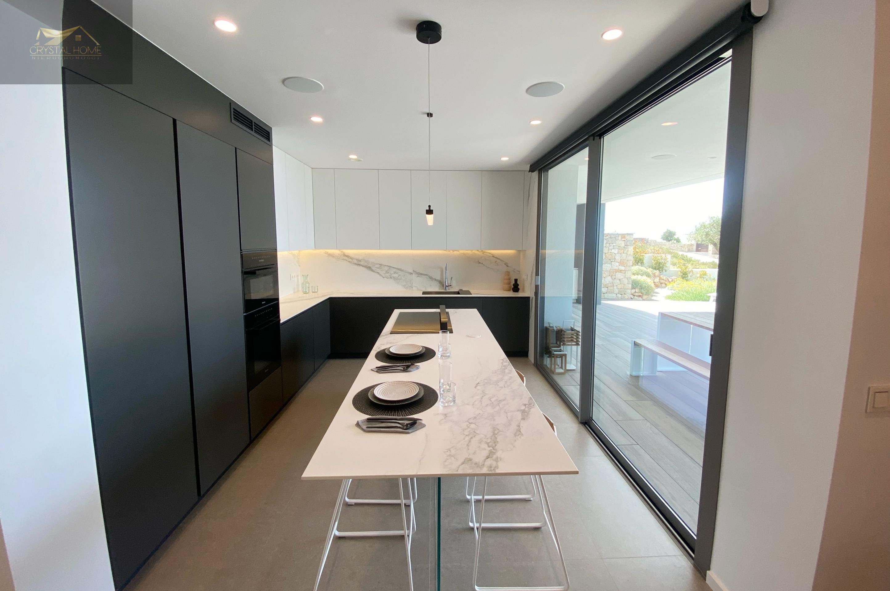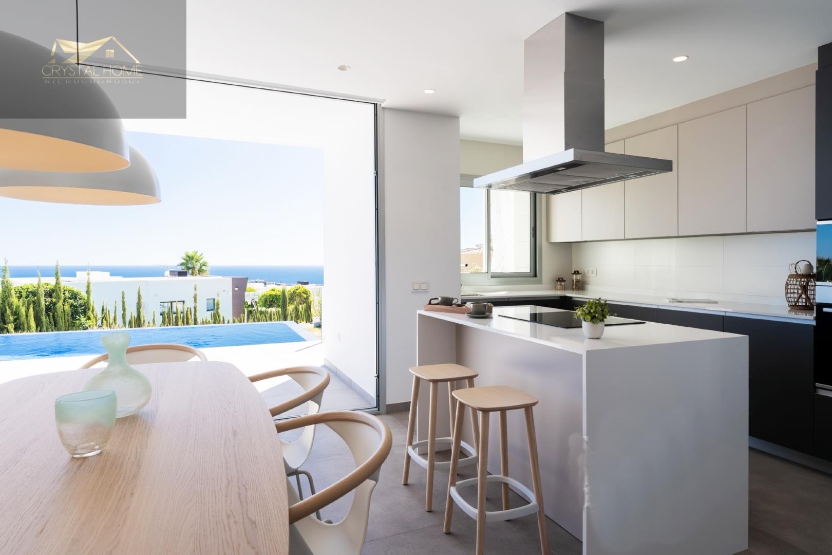 Willa w nowoczesnym stylu, o czystym i eleganckim designie, z dystrybucją zorientowaną na to, aby morze i światło Morza Śródziemnego wtargnęło do wnętrza domu, z otwartymi przestrzeniami dziennymi, gdzie kuchnia łączy się z salonem, tworząc przyległą atmosferę wyznaczoną przez centralną wyspę, niesamowitą przestrzeń, aby cieszyć się śniadaniem lub szybkim posiłkiem nie tracąc widoku na morze.