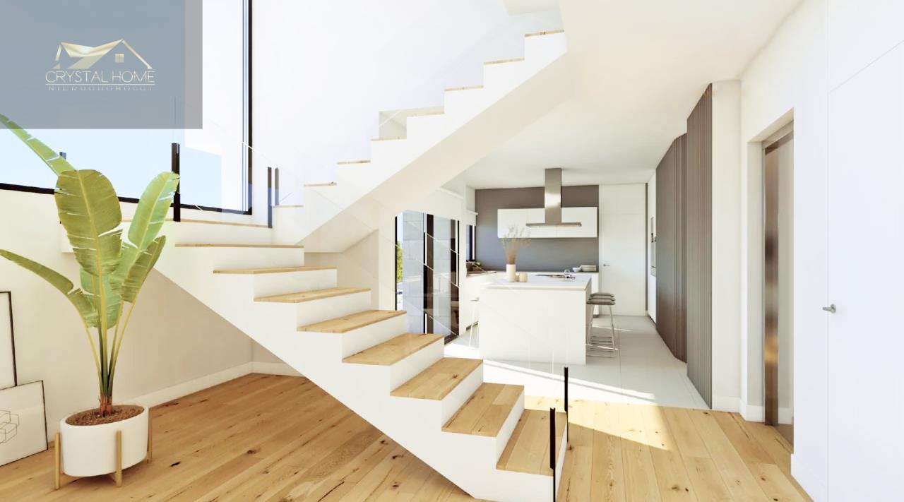 Na parterze zlokalizowana jest strefa dzienna, otwarta i jasna przestrzeń: kuchnia z centralną wyspą połączoną z jedną z werand i zewnętrznym tarasem, gdzie basen infinity przeniesie nas do morza nie oddalając się od domu. Duży salon-jadalnia z dużymi oknami i dostępem do drugiej werandy i głównego tarasu jest jednym z klejnotów tej willi. Na tym piętrze znajduje się również pralnia, dodatkowa toaleta dla gości wewnątrz i na zewnątrz, a także dostęp do windy, która połączy nas z całym domem.