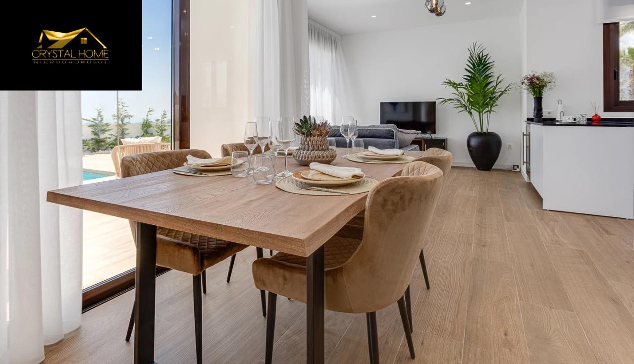 Powierzchnia parteru to 70,3m2 z czego prawie 36m2 przeznaczone jest na salon, jadalnię i kuchnię. Z solarium na piętrze roztacza się widok na morze i góry.