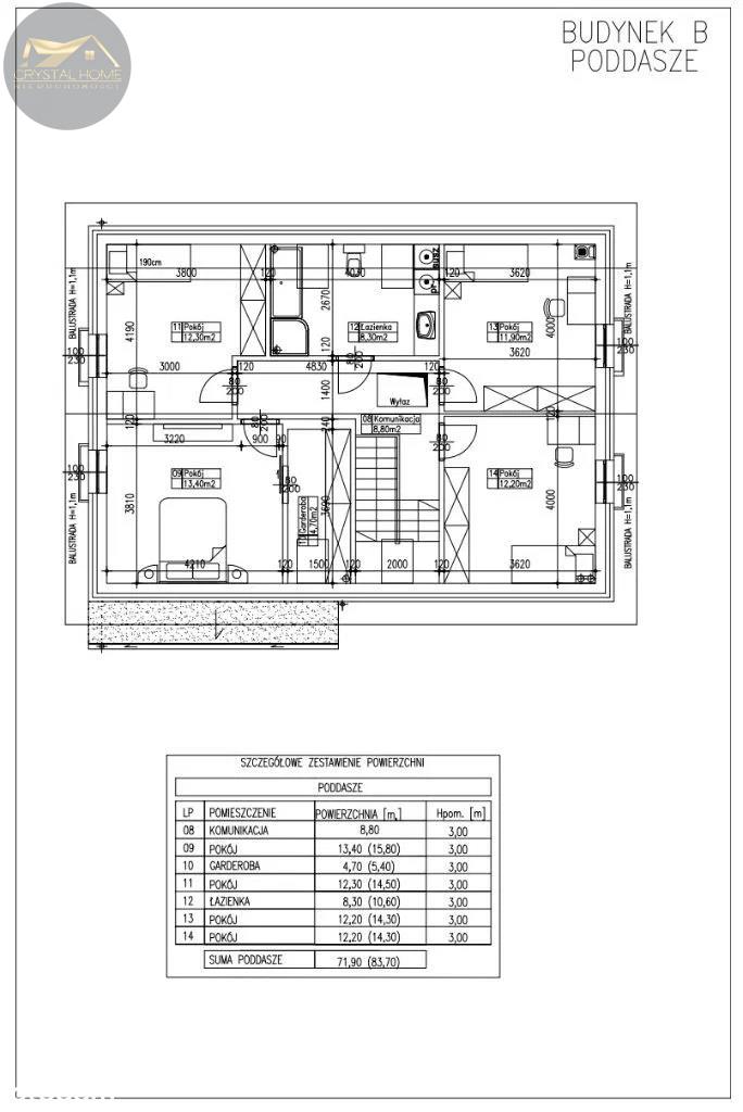 - nad piętrem strych z wyjściem zlokalizowanym w korytarzu, stanowiący dodatkową przestrzeń na przechowywanie.